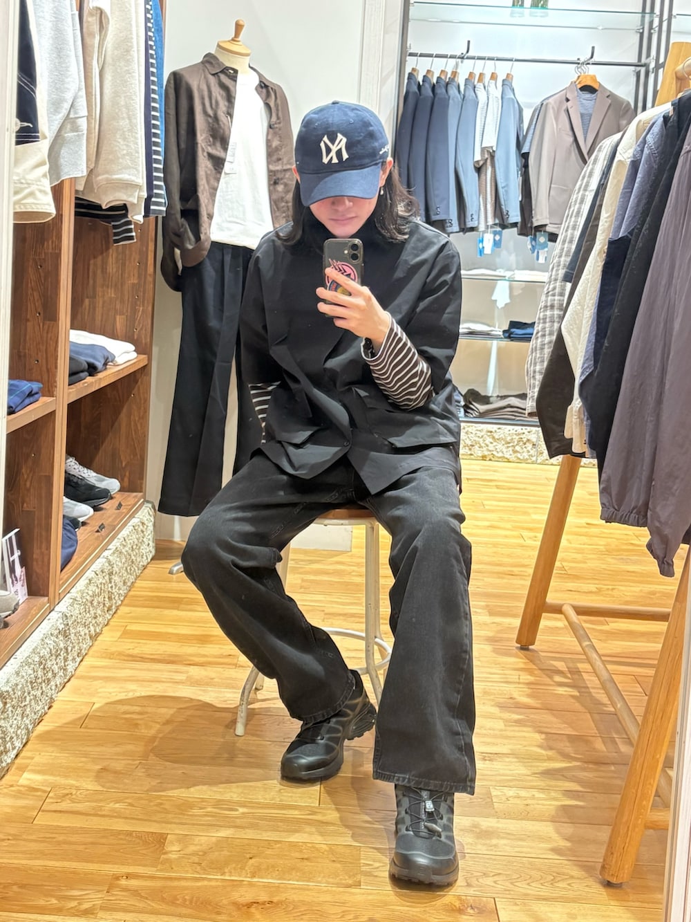 サイズ感命ですが、着膨れさえしてなければ基本的にはOKです。