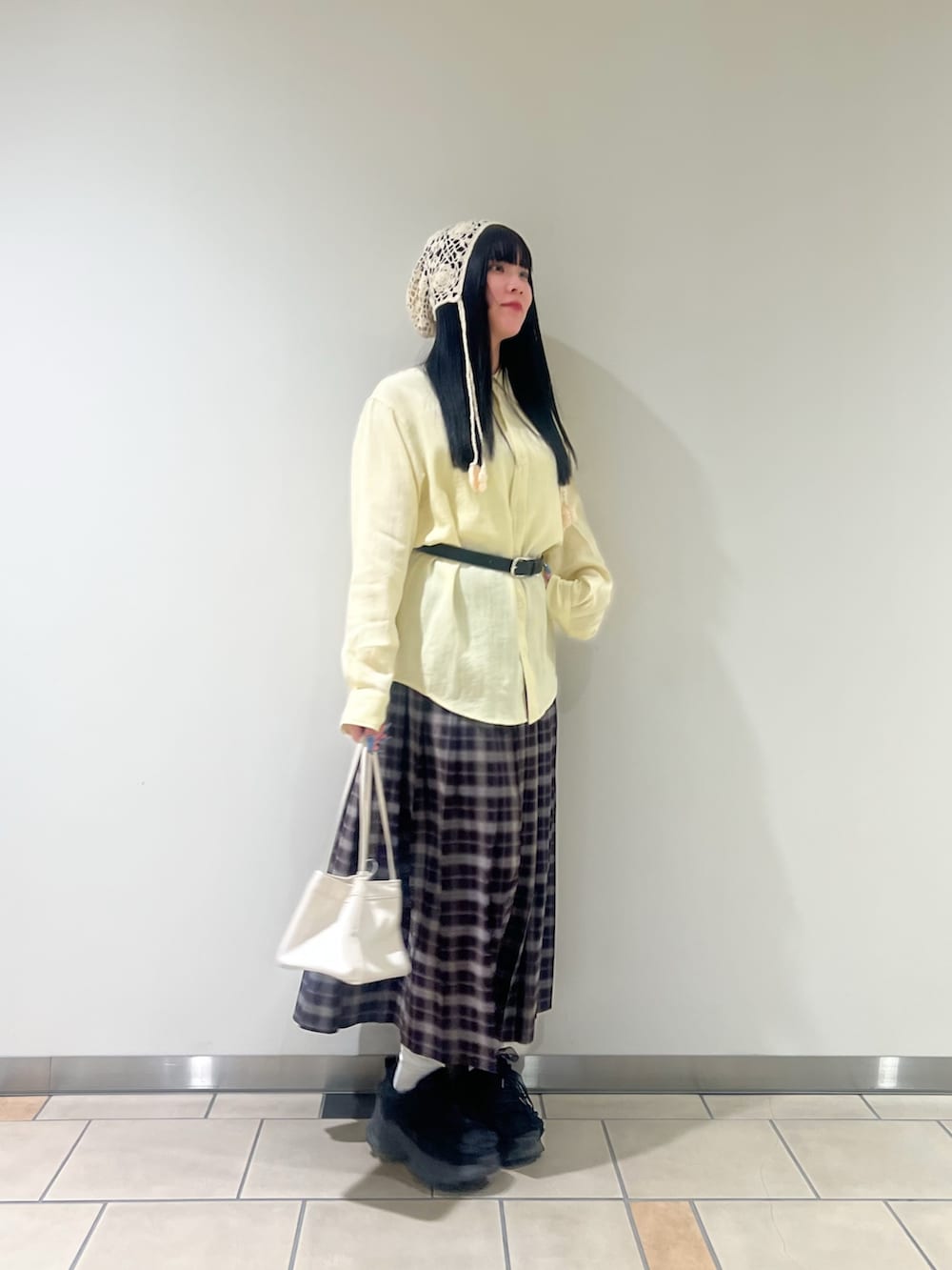 シャツとスカート合わせだとぼてっと見えてしまう事が多いのですが、ベルト合わせですっきり見えするのでおすすめです💡‎⟡ᯓ⟡