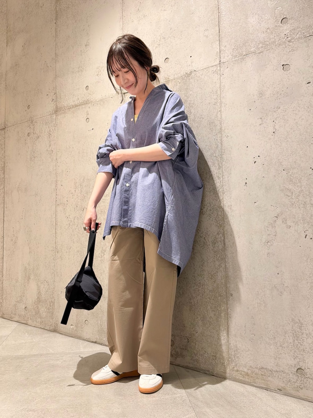 軽く、しなやかなシャンブレー生地が大人カジュアルを演出してくれます。