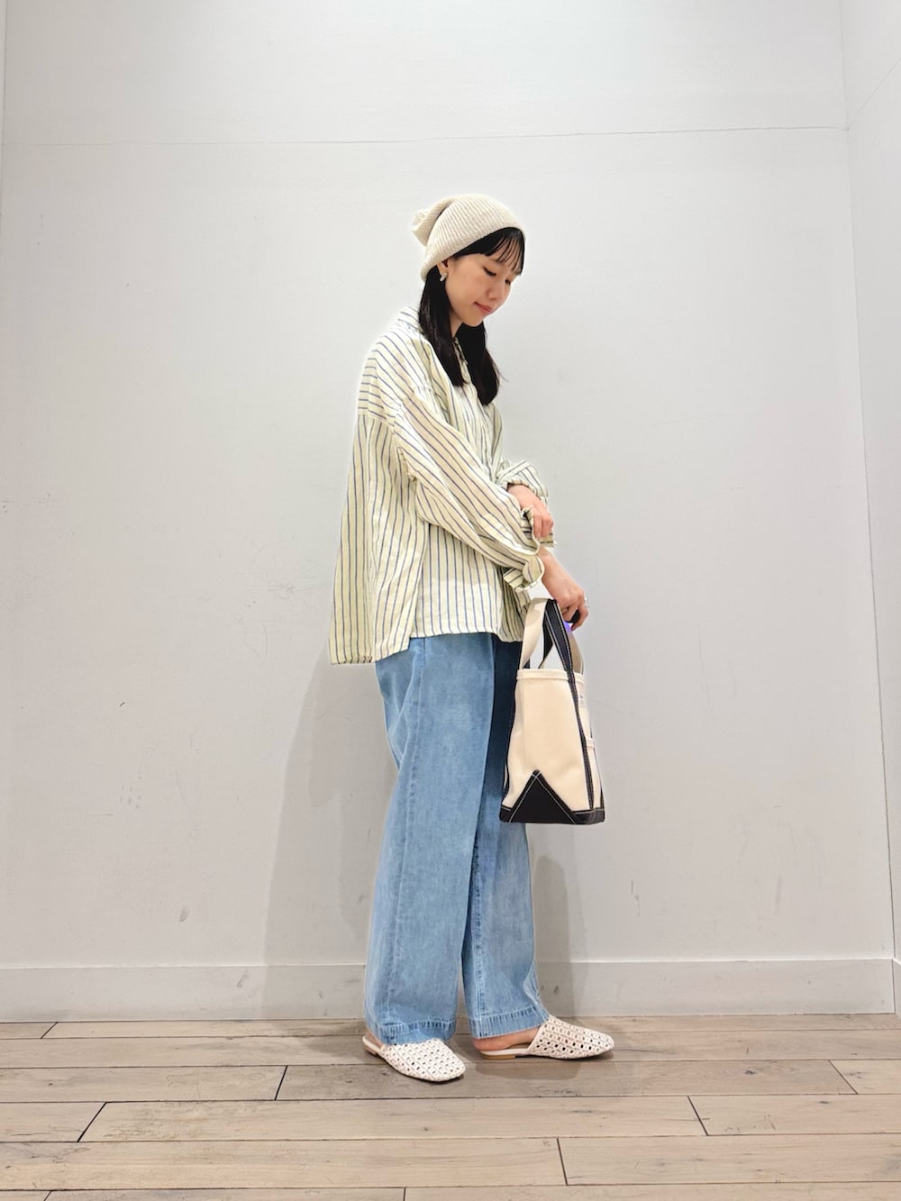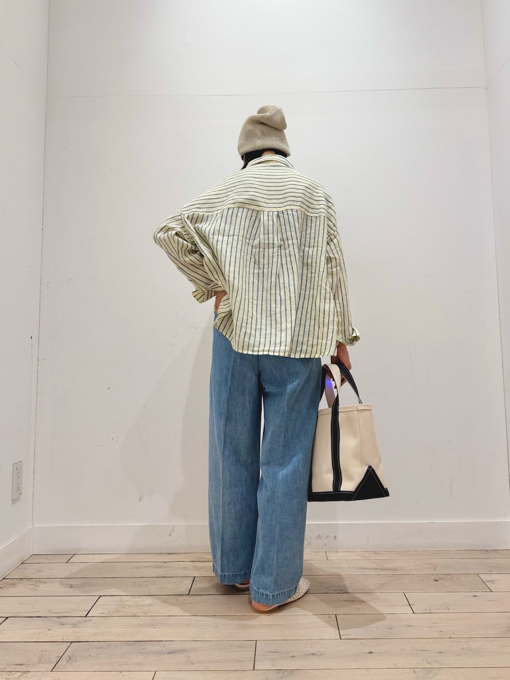 デニムは定番の綿麻デニムです👖綿麻なので薄く、柔らかく、まさに夏に履けるデニムです‼︎