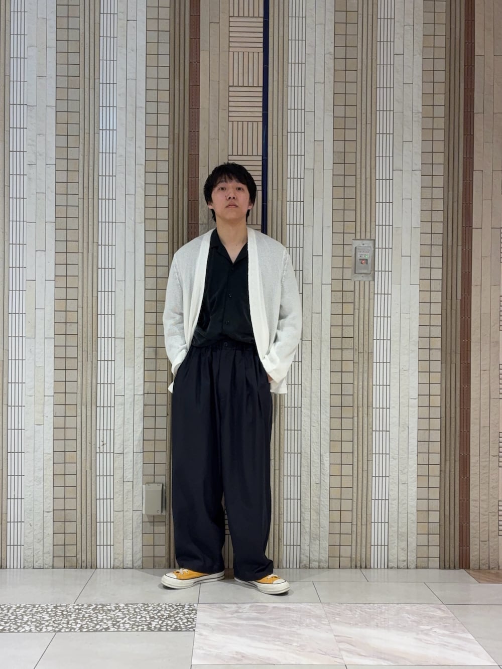 さて、スタイリングでは一切笑わない私ですが、昔から写真を撮られ慣れてないだけです。実際に喋ると笑いもするし怒りもします。感情のない顔でモノトーンを着るとよりその印象は強く感じられます。せめてもの印象操作で柔らかい素材感で着てこそすれ、無理なもの無理です。