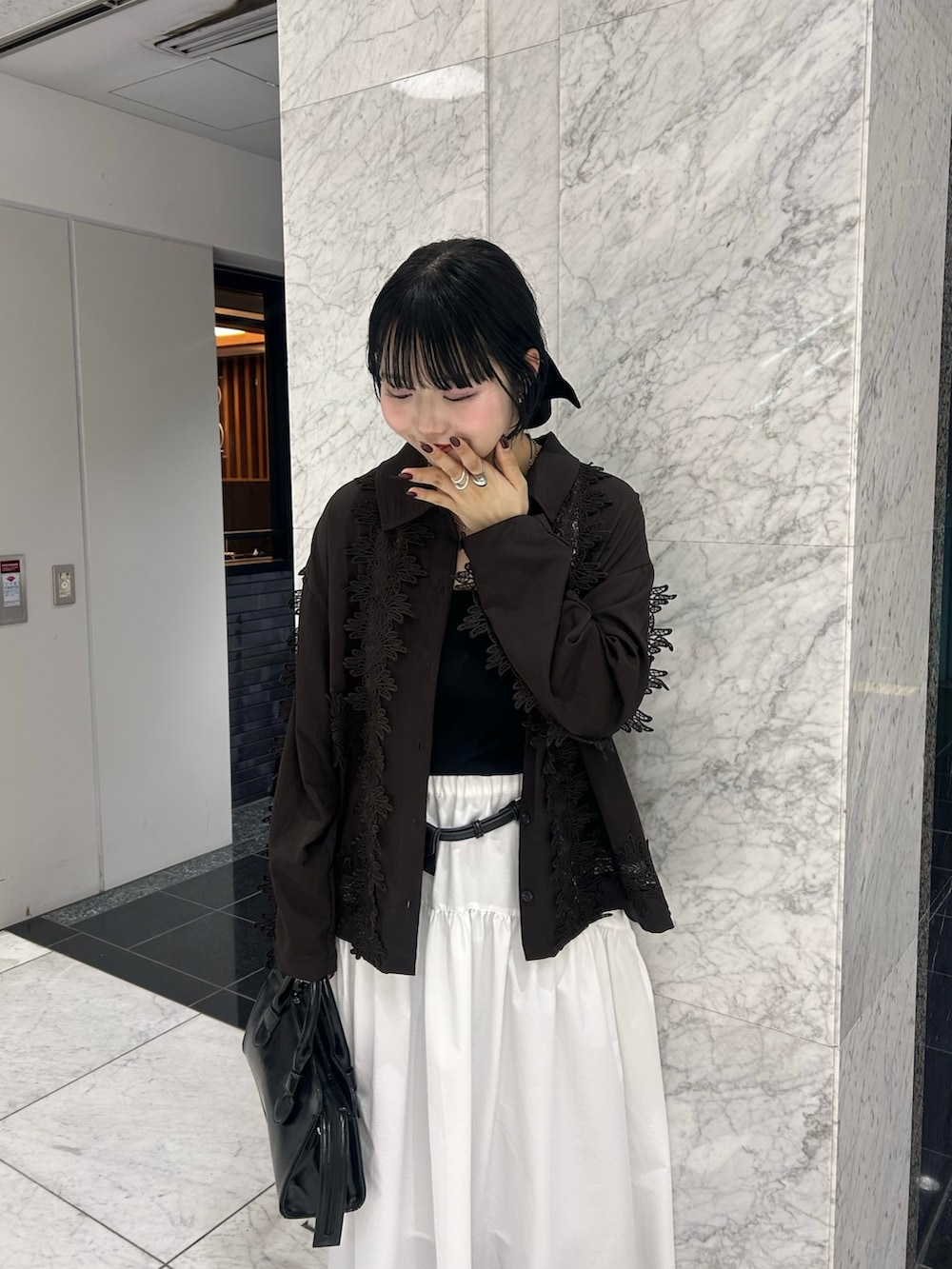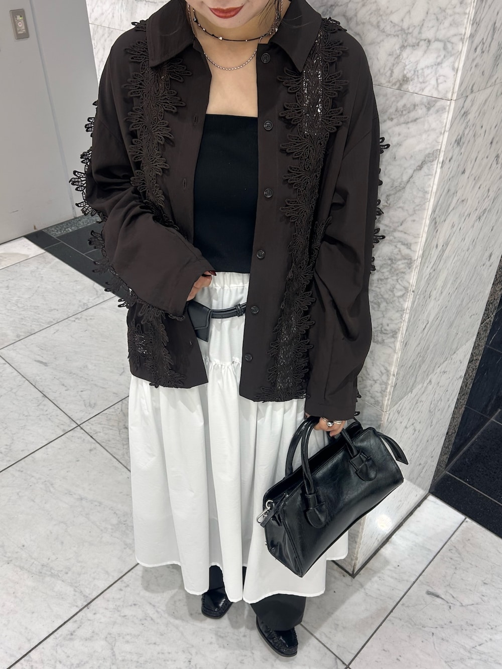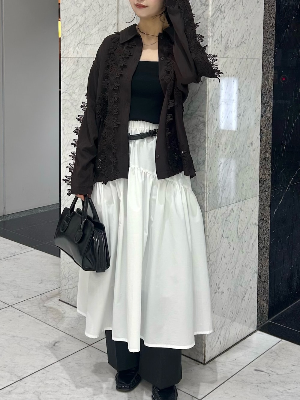 白スカート×レースの組み合わせがかわいい🎵