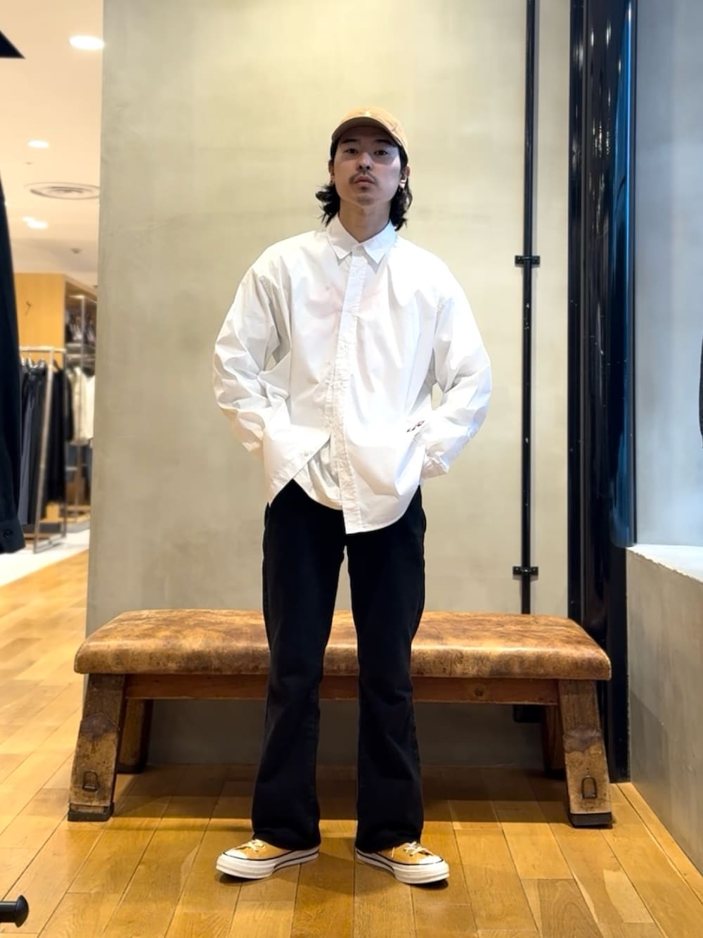シンプルにブラックデニムで合わせましたが、シューズはイエローでアクセントをだしてます!