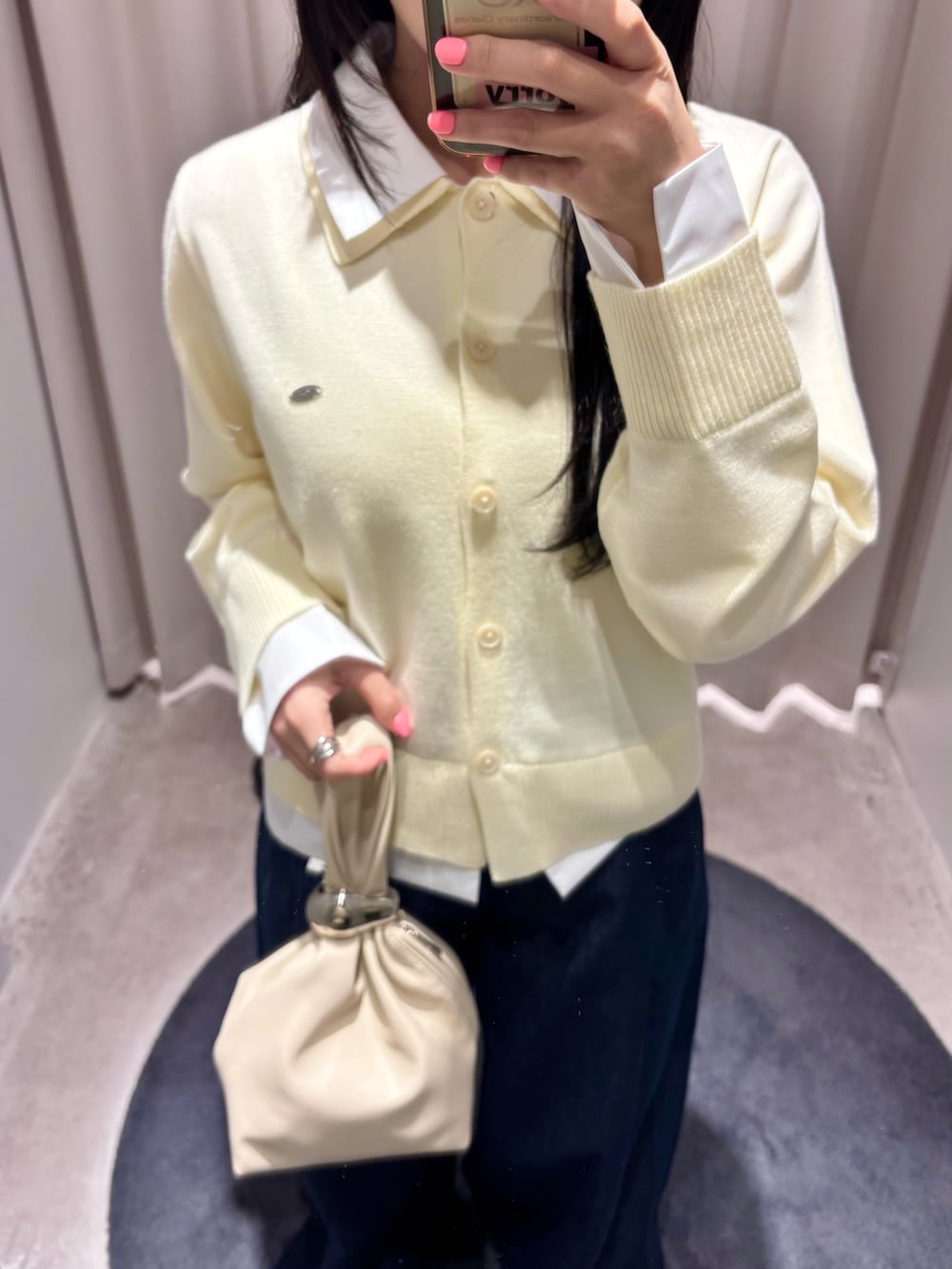 シャツレイヤード風ニットは、サイズ感がコンパクト過ぎずオーバー過ぎずで、綺麗な形で崩れることなく着ていただけます!