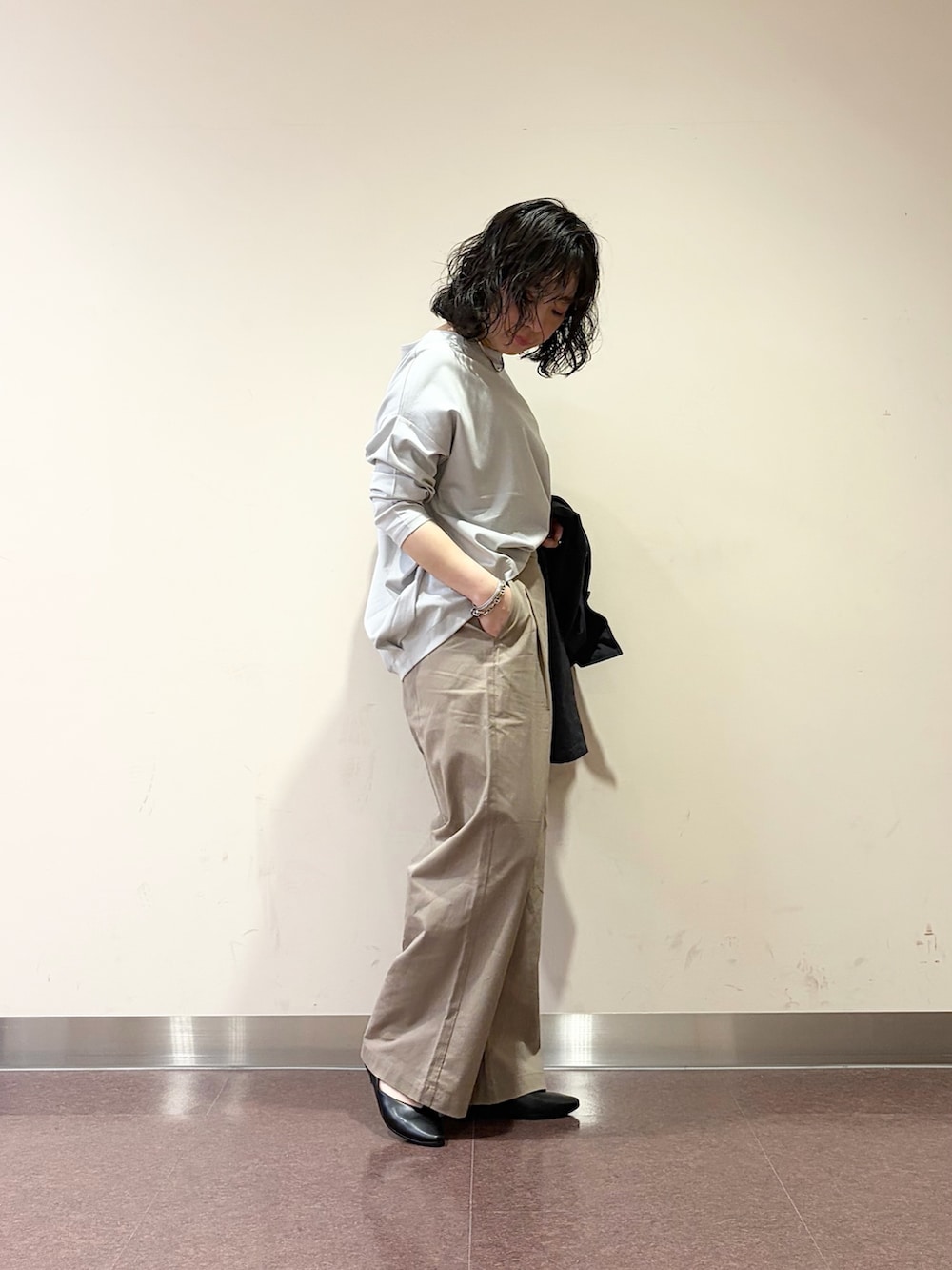 前後の長さを変えてあるカットソーは、スタイリングのバランスをとても取りやすく、タック入りでバックシルエットに程よい丸みも出てどこから見てもキレイなデザイン