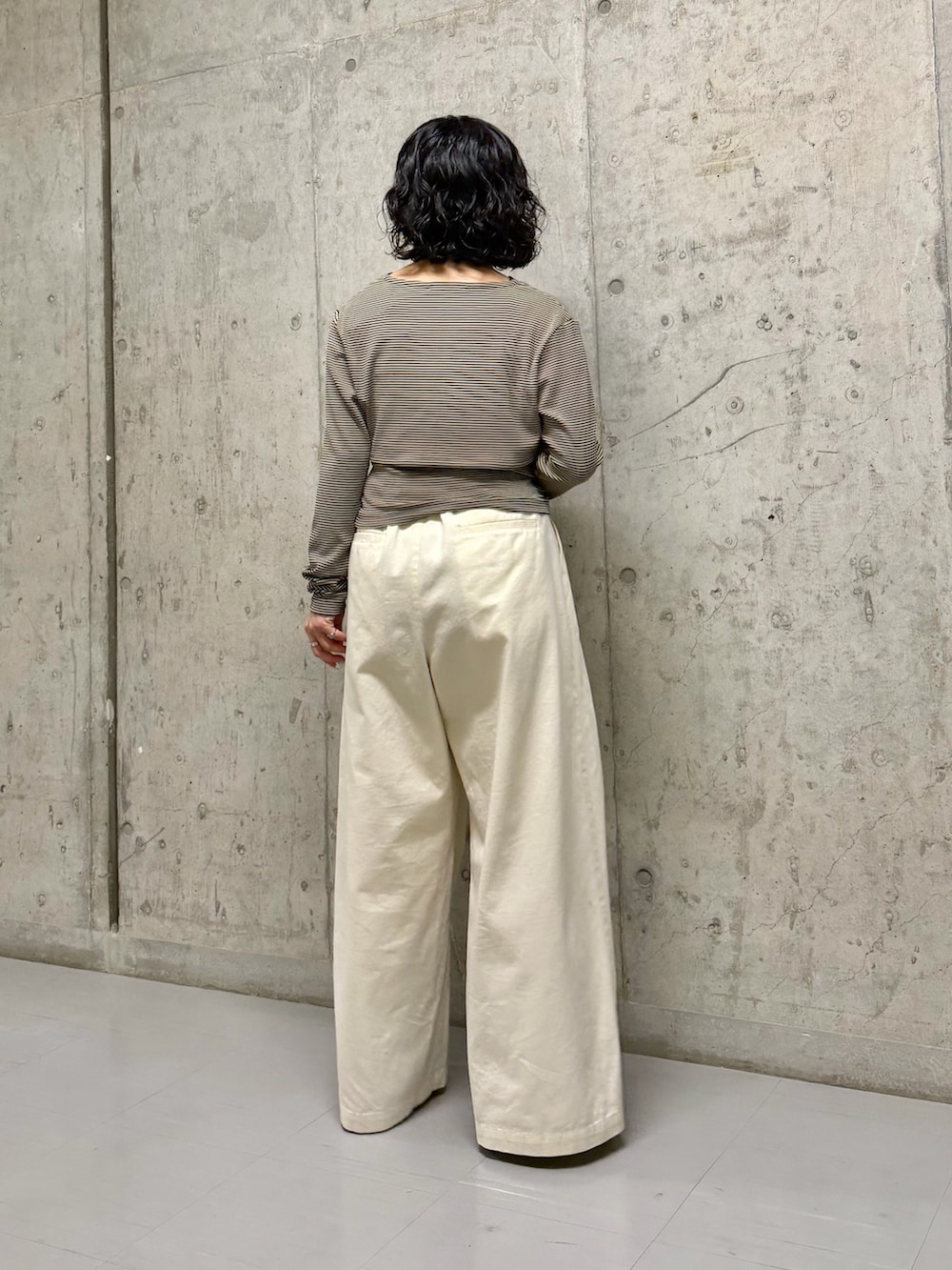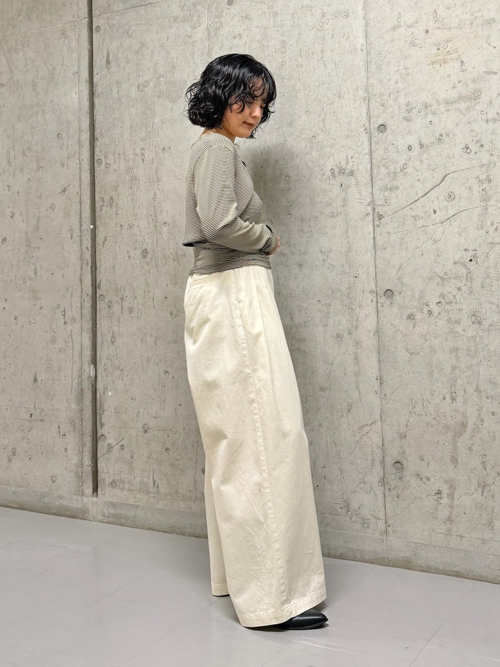 女性らしいサイズ感のトップスをワイドパンツでメリハリをつけたコーディネートにしました!