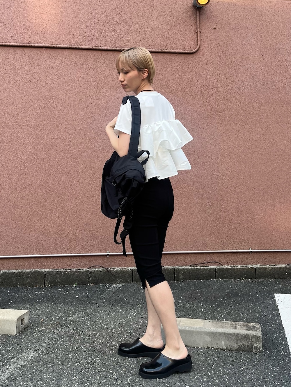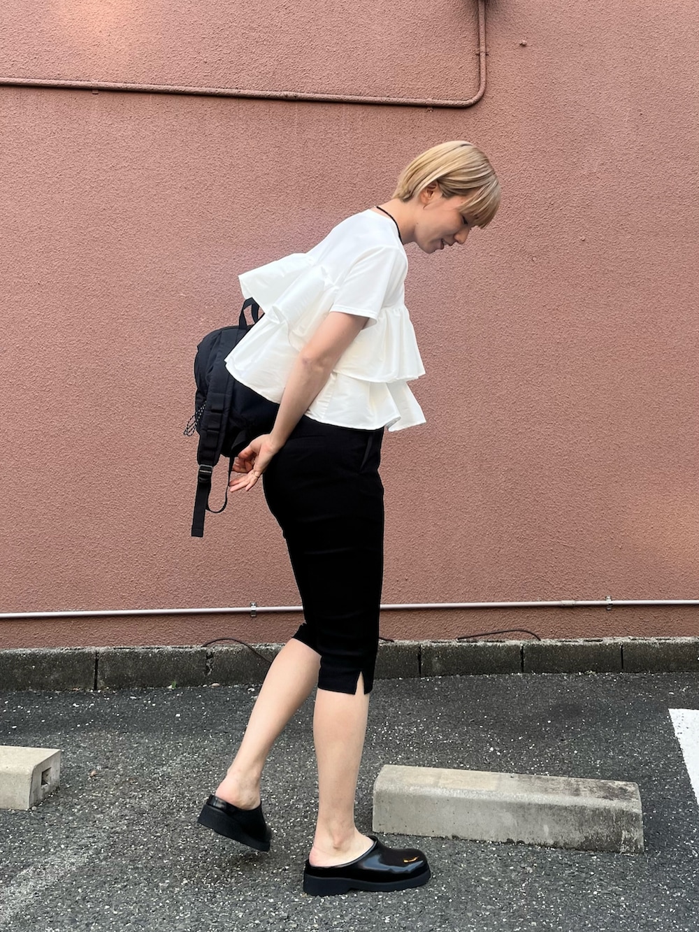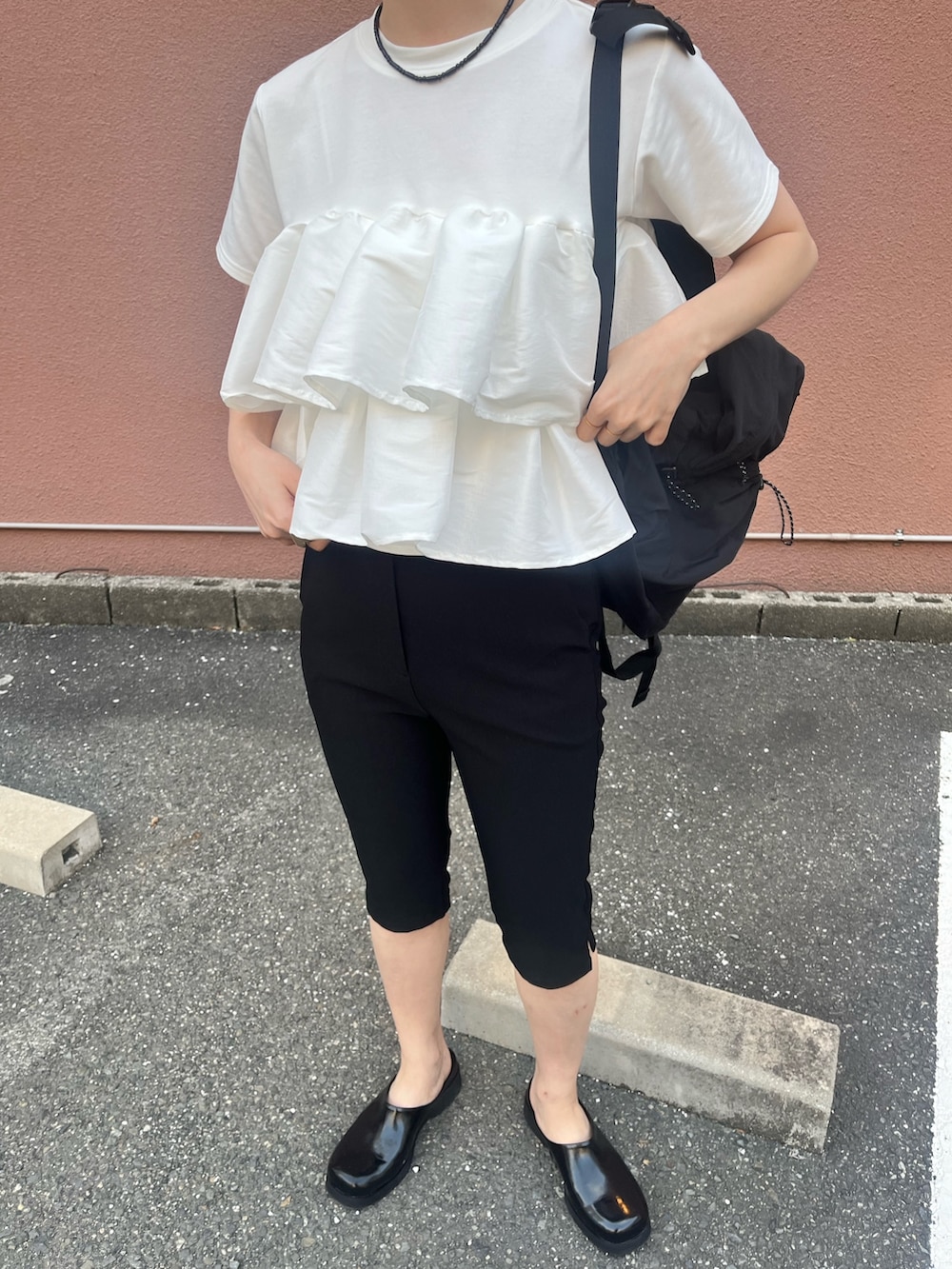 他のアイテムはブラックでまとめて、モノトーンコーデにしてみました♩