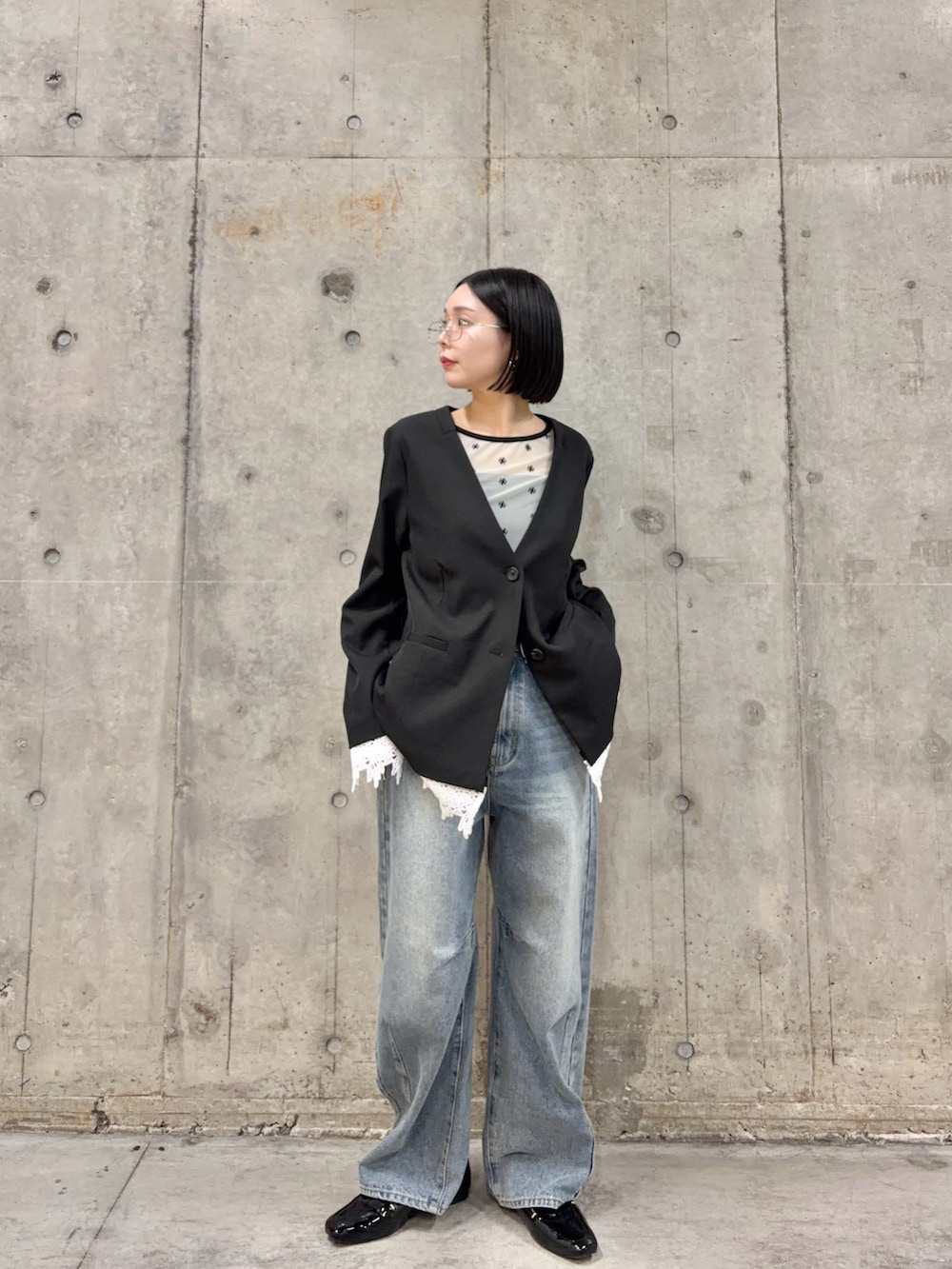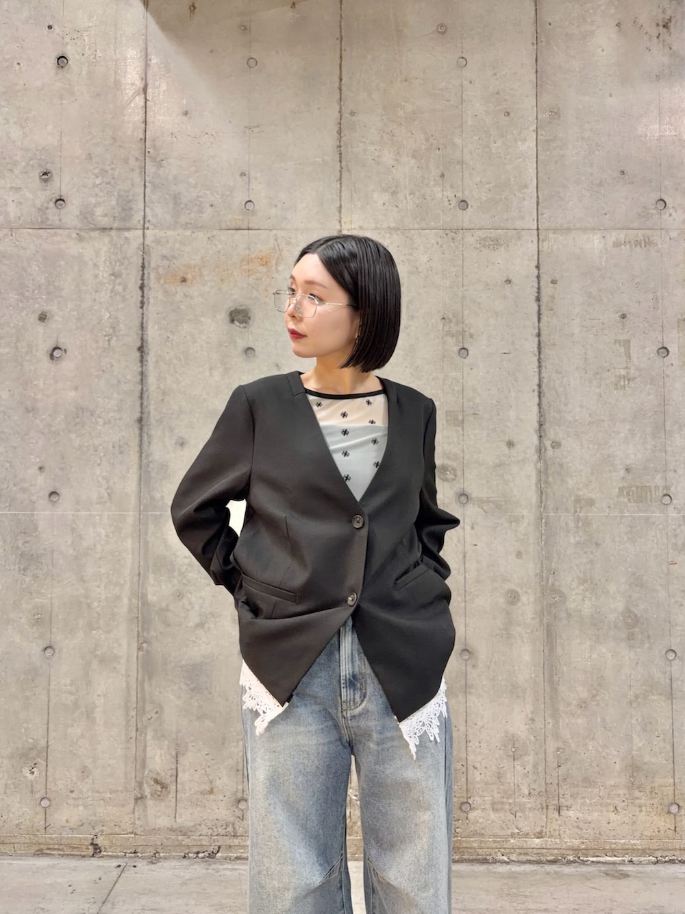 SENSE OF PLACEレースレイヤードノーカラージャケット- カラー: