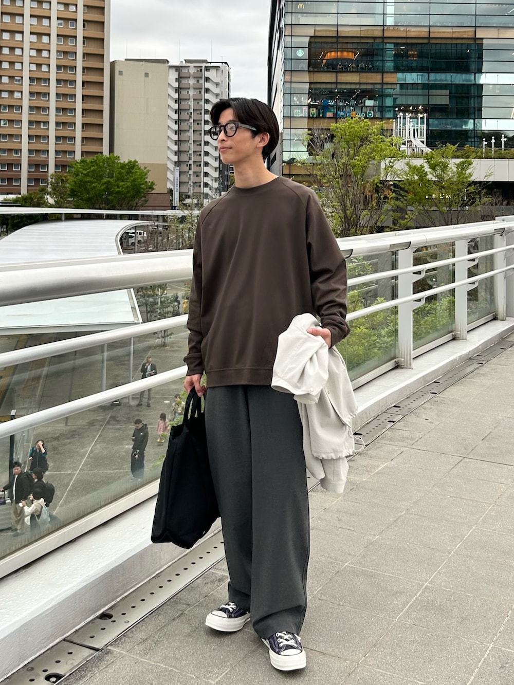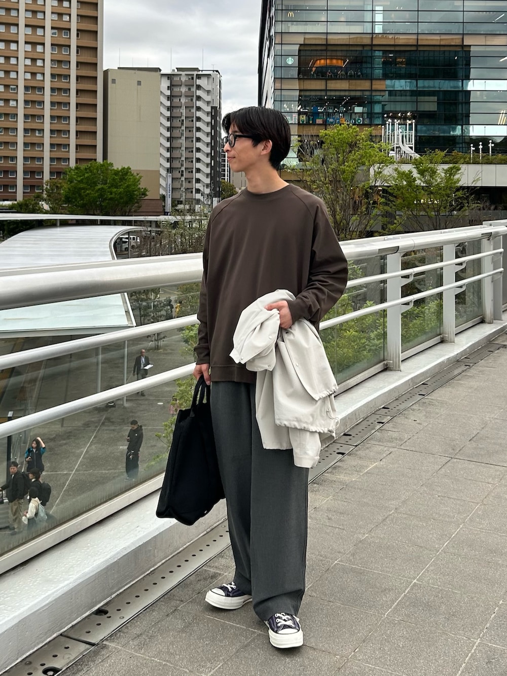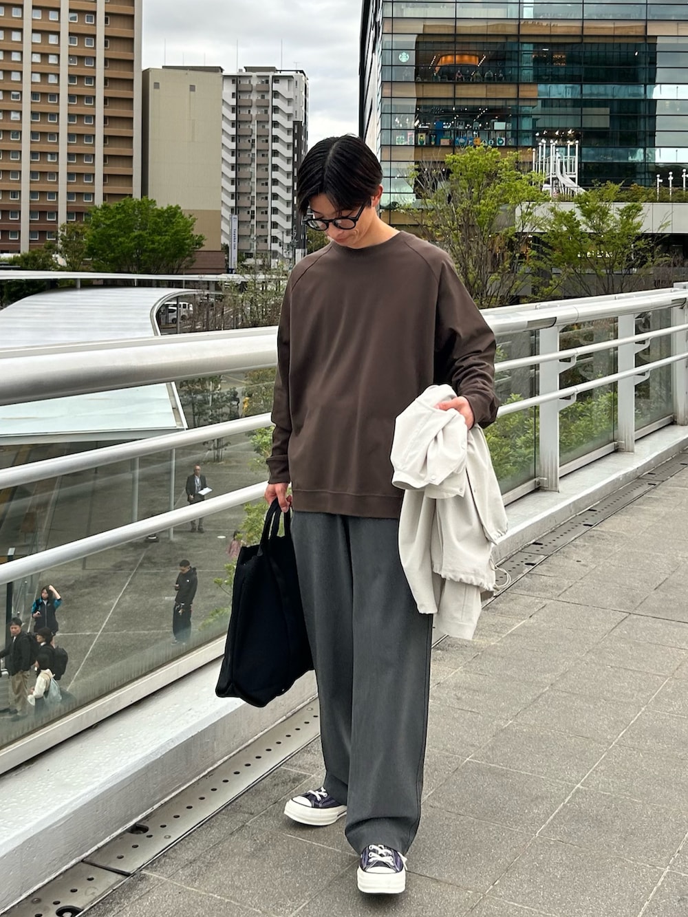 1番シンプルで重宝するアイテムで合わせてみました。どのアイテムも程よくゆとりがあり
