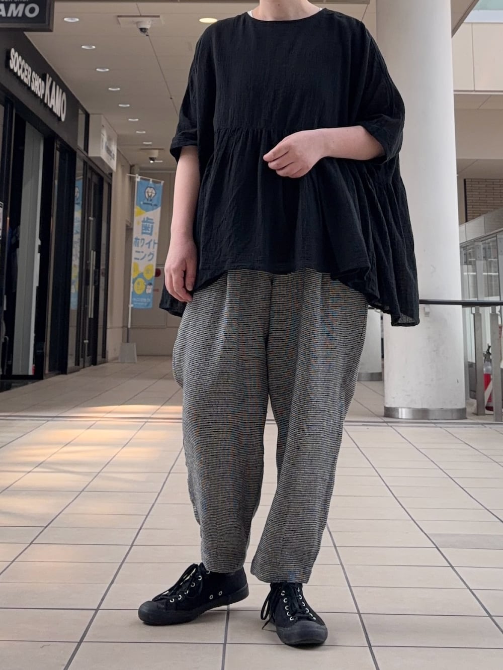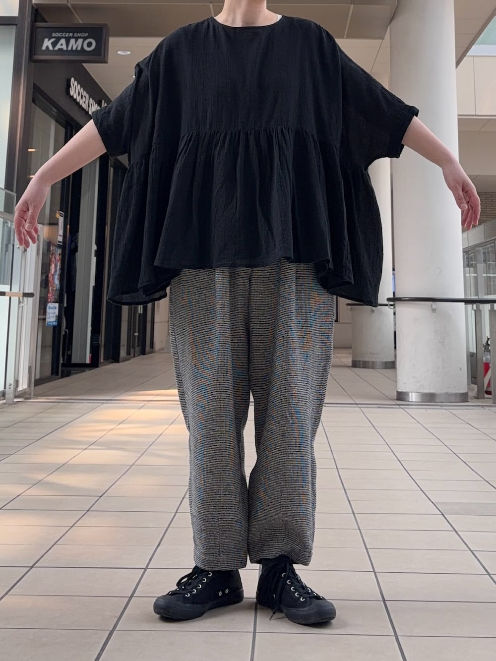 今回はチェック柄のボトムとあわせて大人シックな装いに。ぜひお試しくださいませ🌷