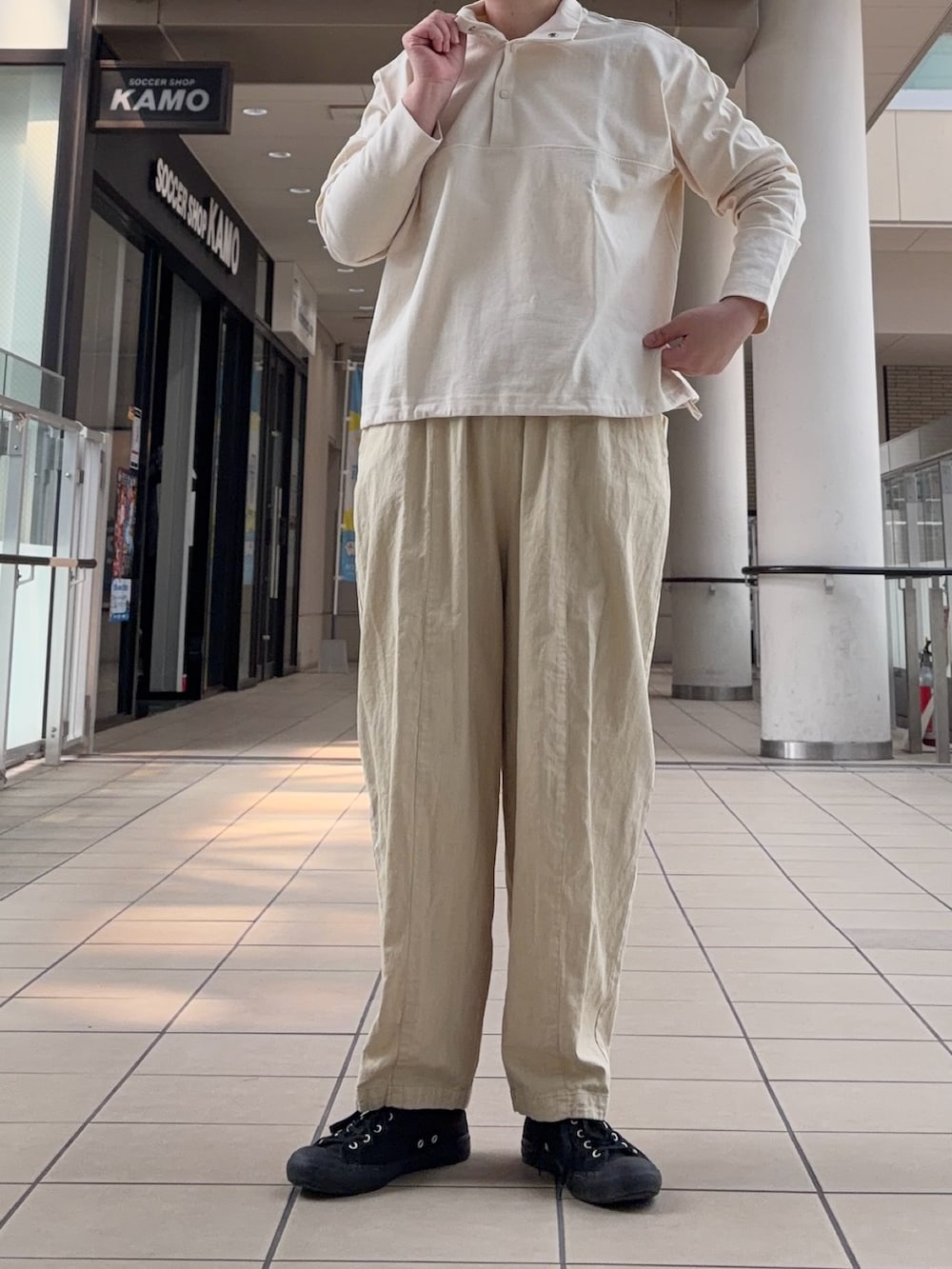 今回はイエローがかわいいボリュームパンツに合わせた大人カジュアルです。