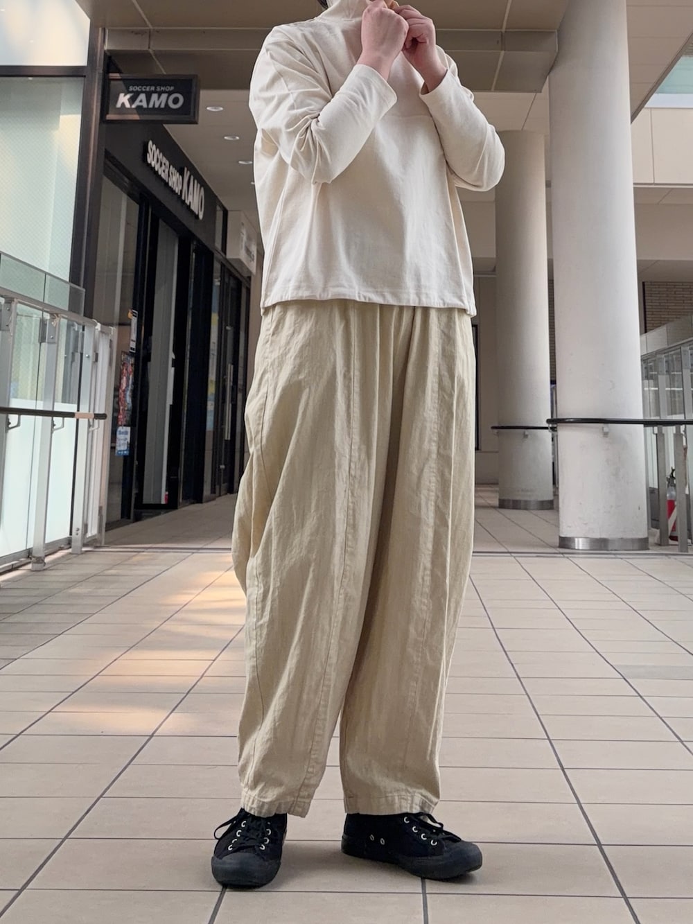 パンツは程よいボリューム感があらゆるトップスに合わせていただけます。