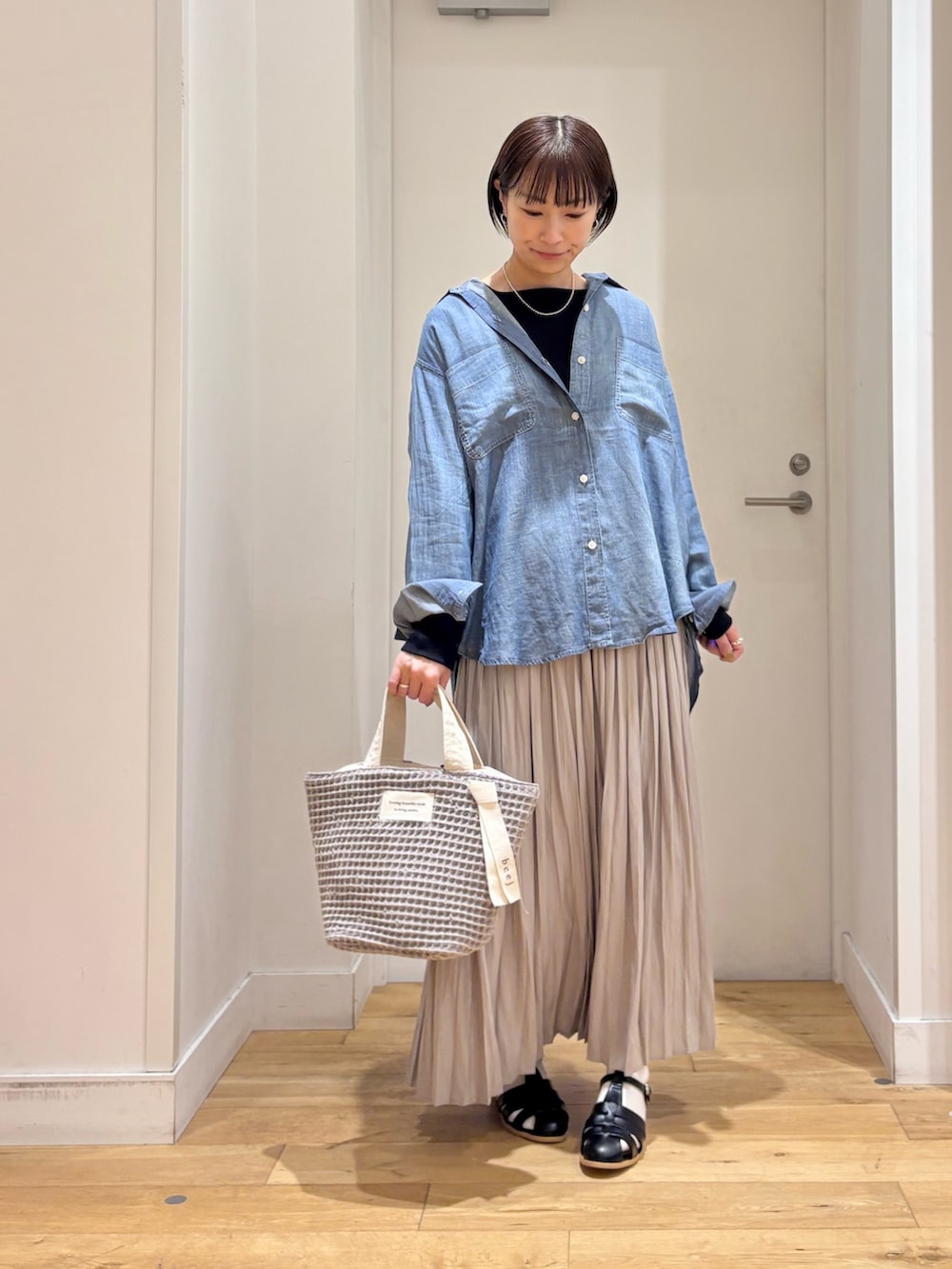 少し厚手のアイテムの上にも重ねて着られるサイズ感で長い時期にお使いいただけます!