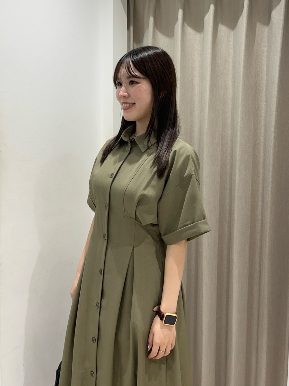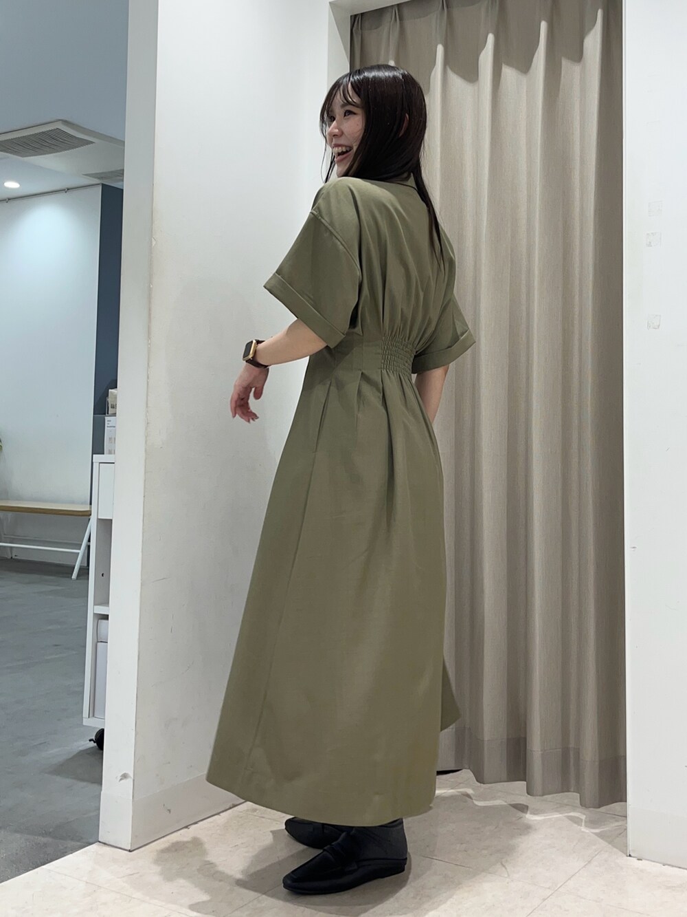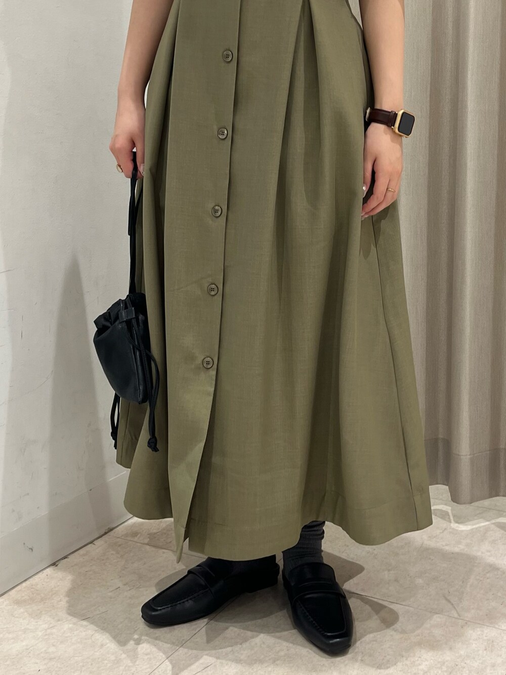 肌馴染みがよく、カーキにほんのりベージュを混ぜたようなカラー。ウエストタックの位置やスカートの広がり具合、肩周りの落ち感がスタイルをより良く見せてくれます🫶