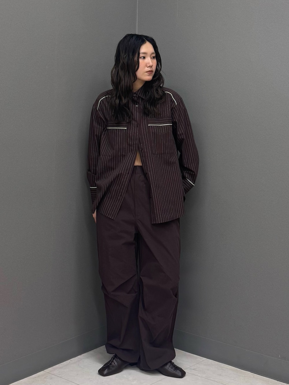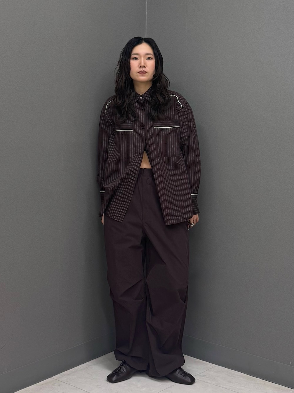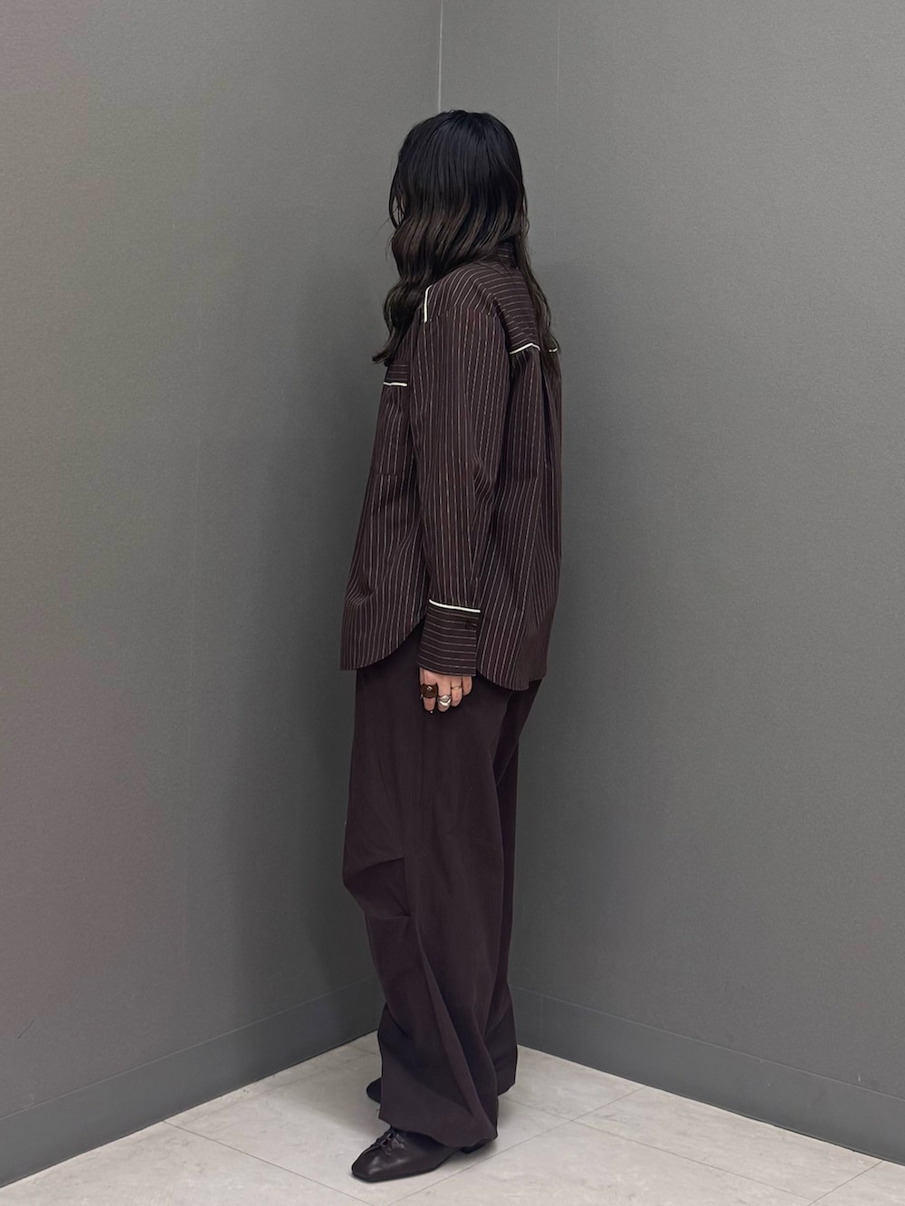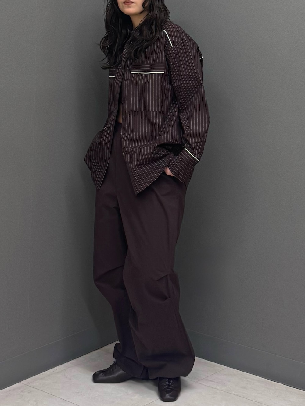 同素材のストライプイージーパンツ(KB26130-2045100)とセットアップの着こなしもおすすめです🌟