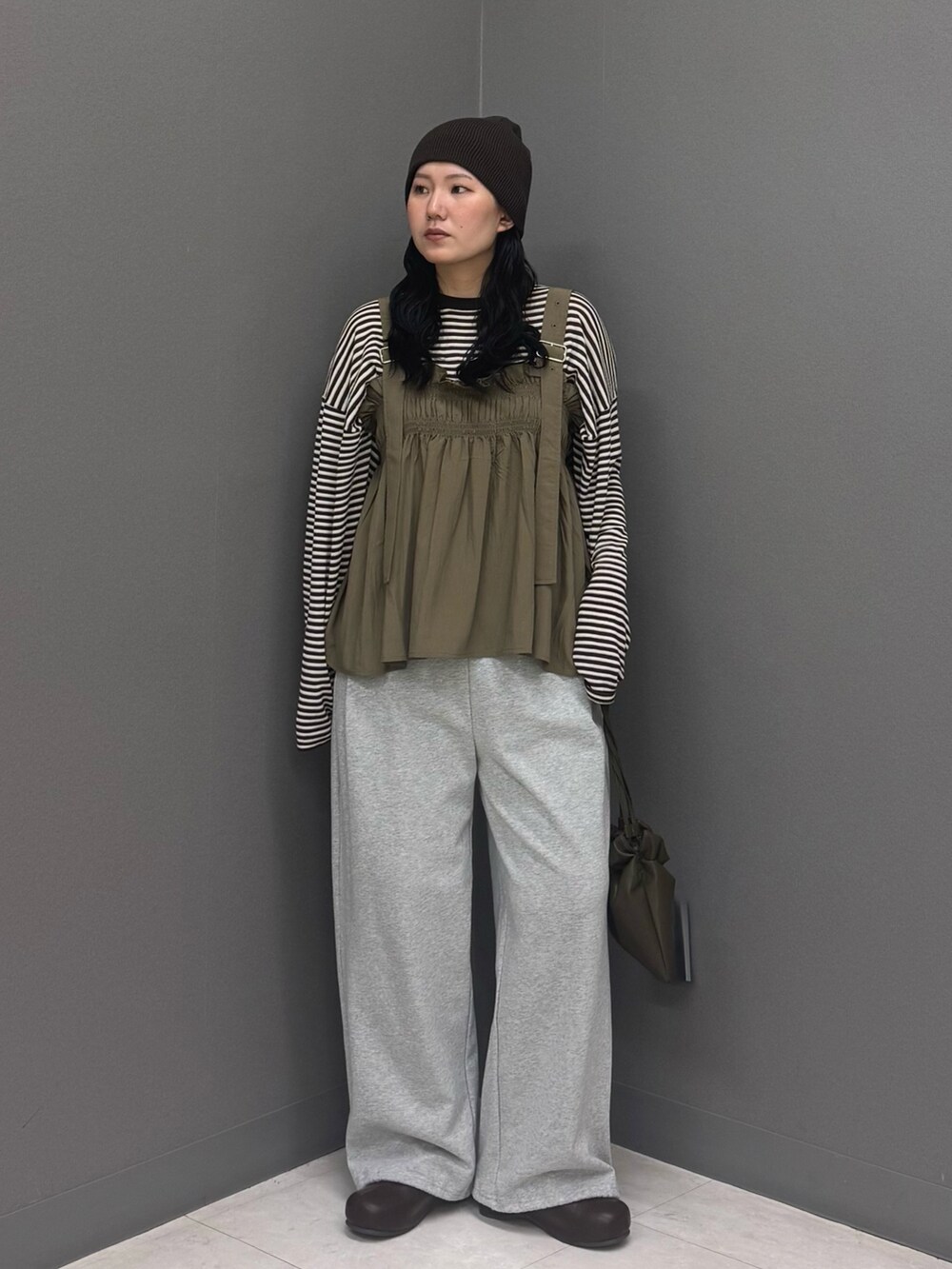 さらっとした素材で落ち感があるので着膨れしないのも嬉しいポイント