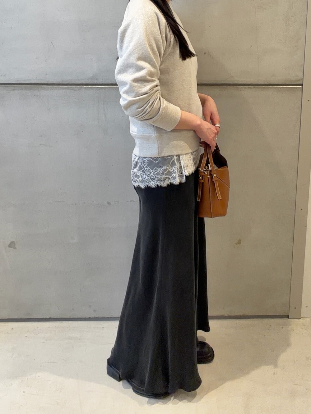 スウェットの下に、レースをレイヤードする事で、カジュアルすぎずな印象になり、綺麗目になり、コーデに雰囲気を出していただけます✨