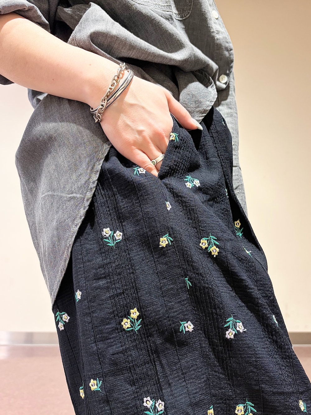 フラワー刺繍イージーパンツ