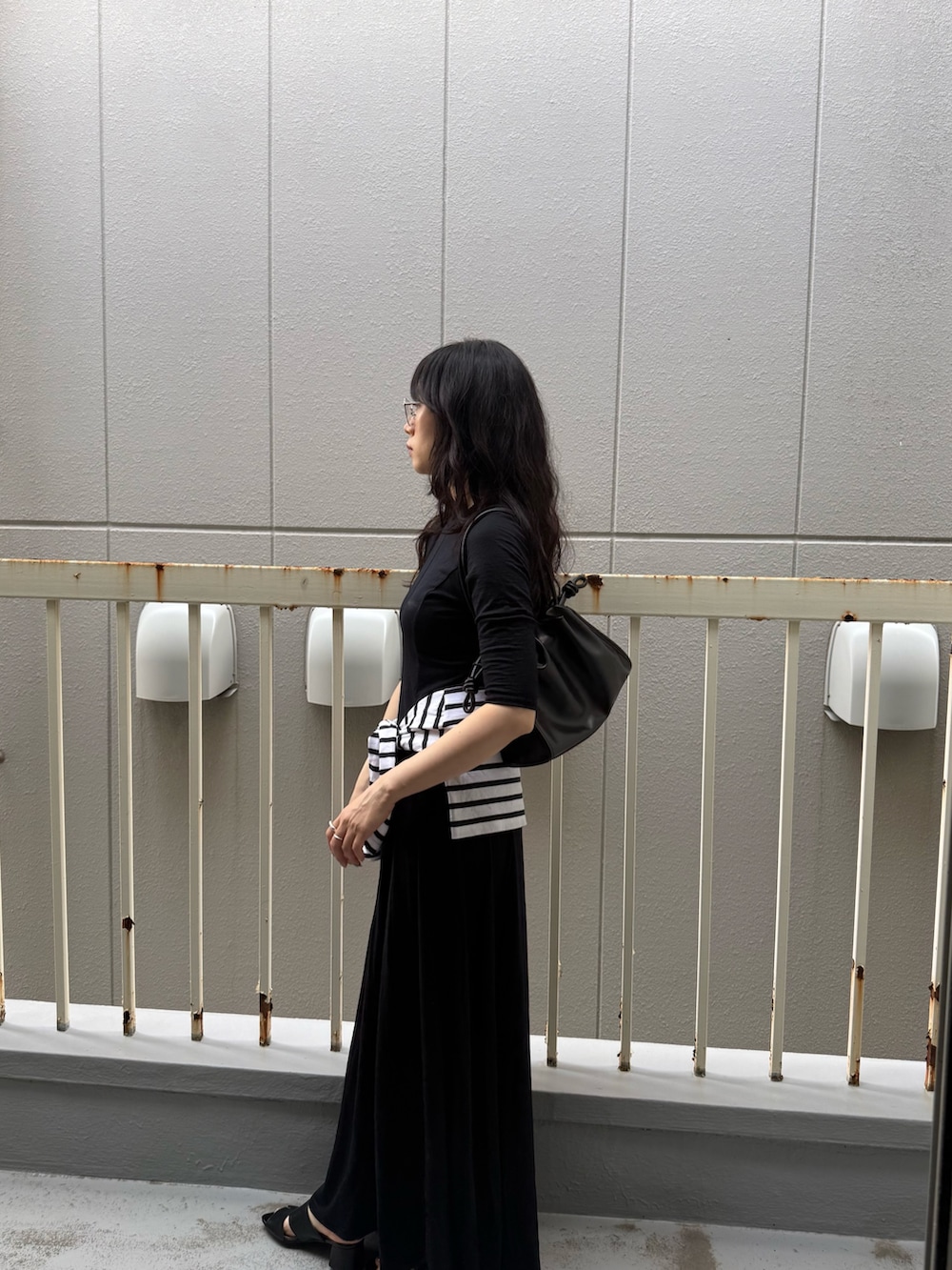 推しのnew basicマキシワンピースをメインに着てみました。