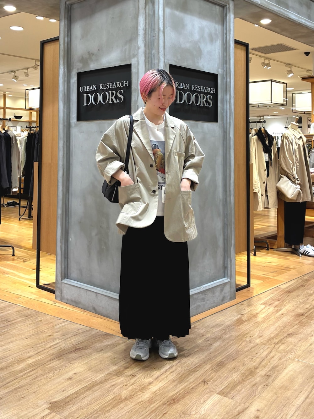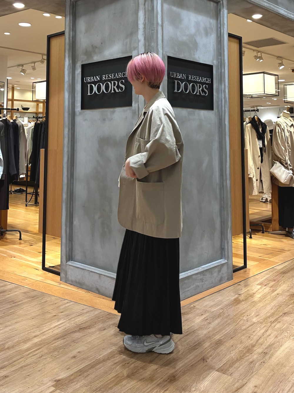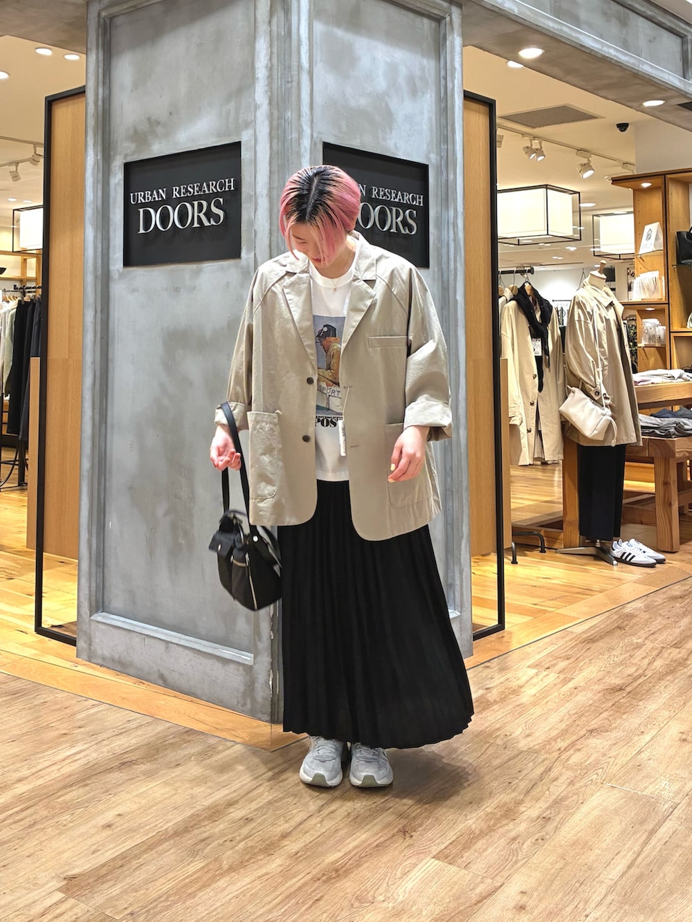 オーバーサイズのジャケットとふわっと広がる、でもシルエットが綺麗なスカートは相性抜群ですよね!!