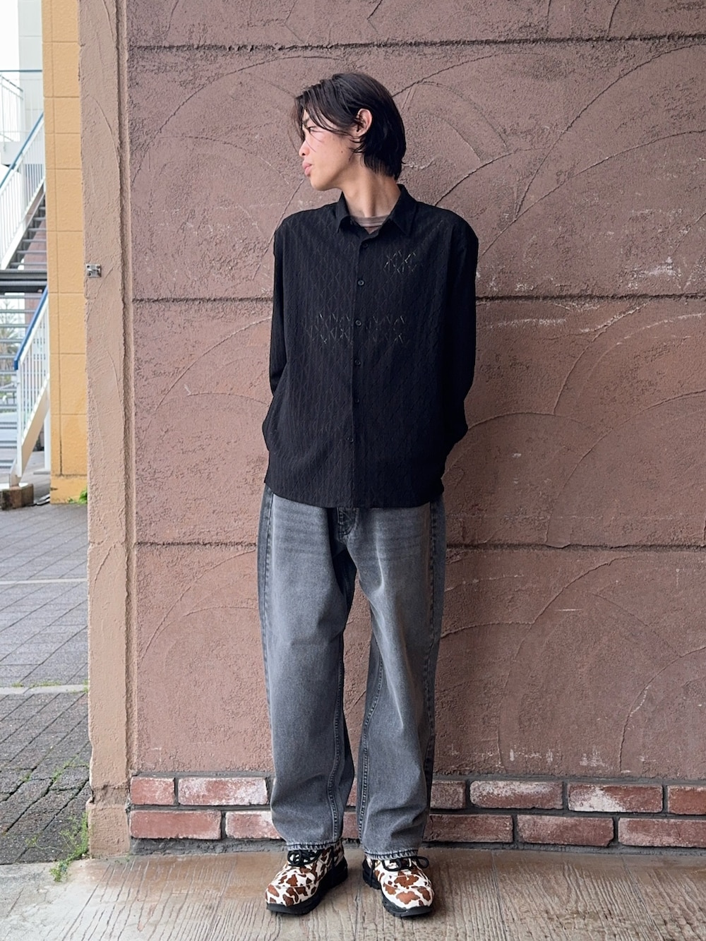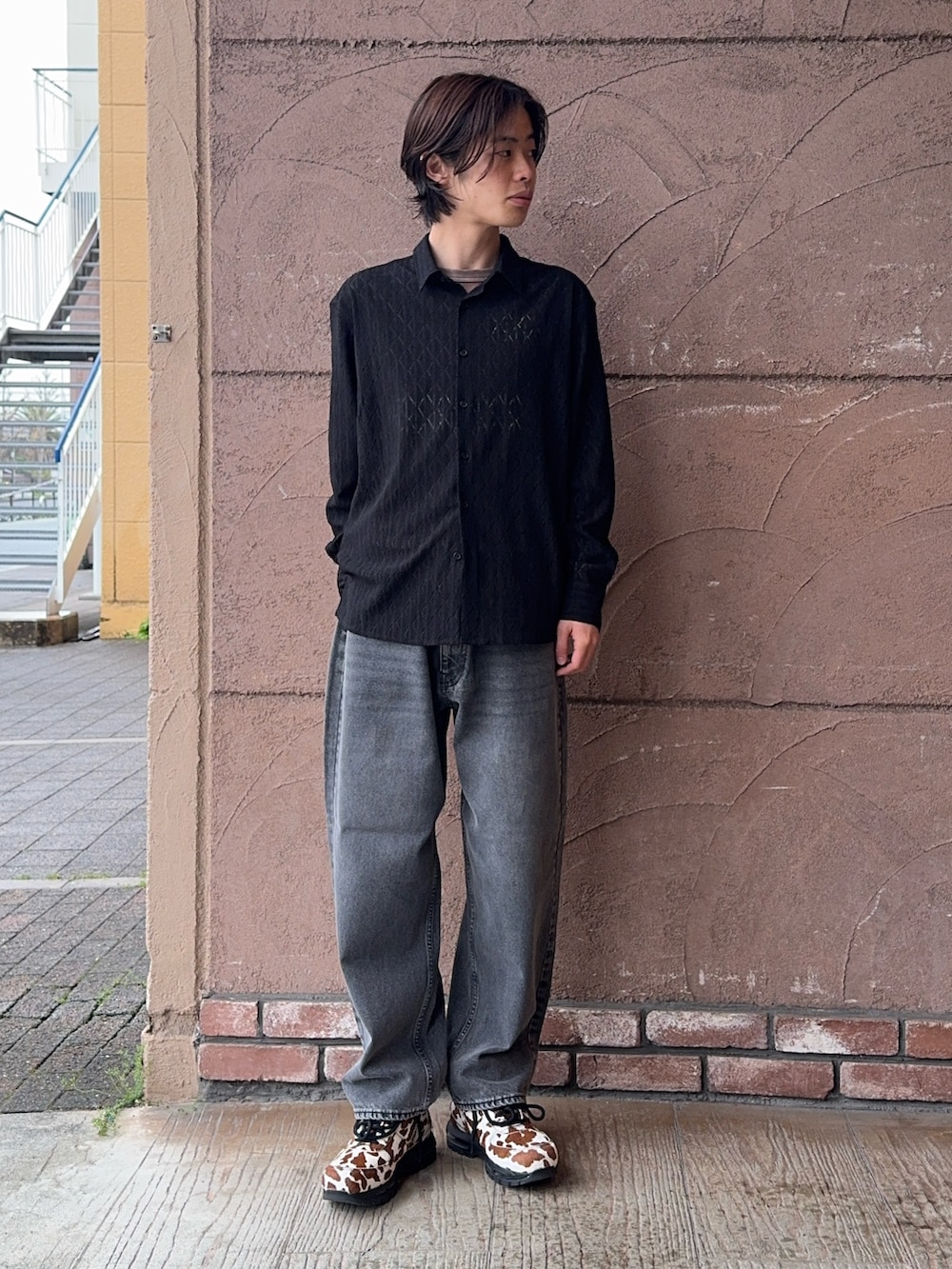 今回のコーディネートはレースのレギュラーカラーシャツにバギーデニムパンツを合わせました!シャツはレースになっていて、涼しくオシャレ感が増す気がします!デニムパンツは太めのバギーシルエットで履きやすい形です!