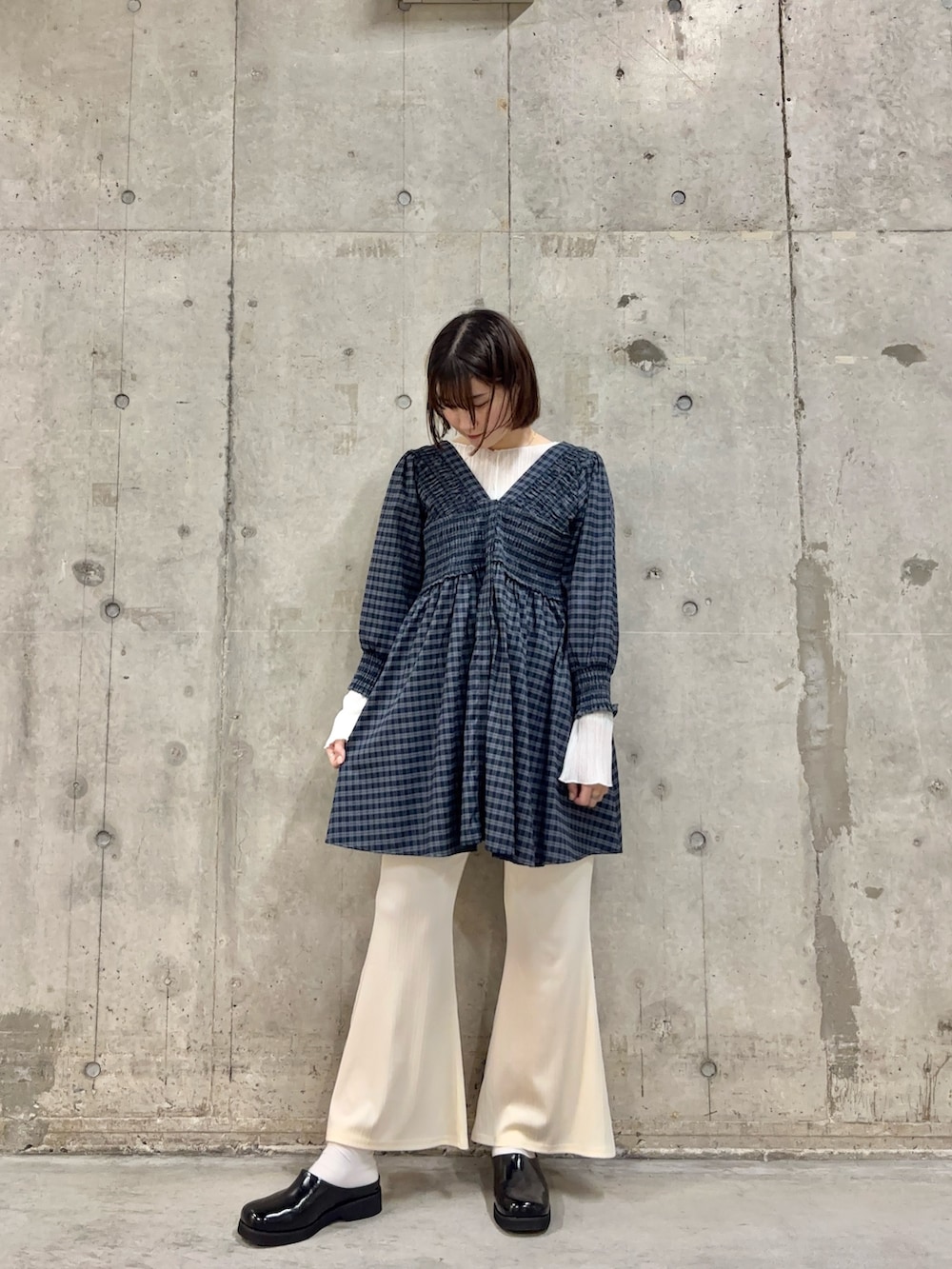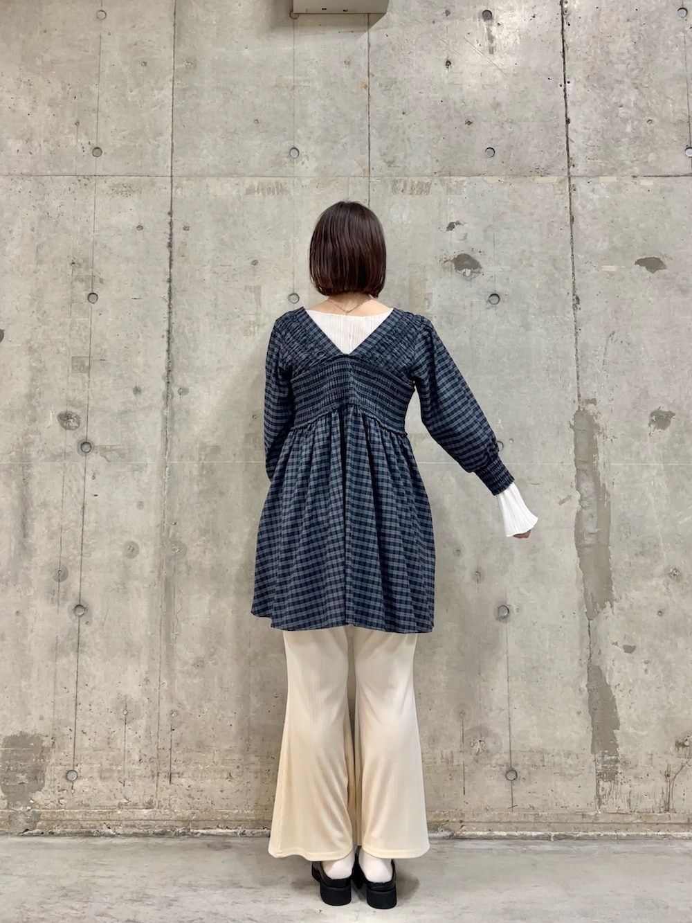 2WAYシャーリングチェックミニワンピース