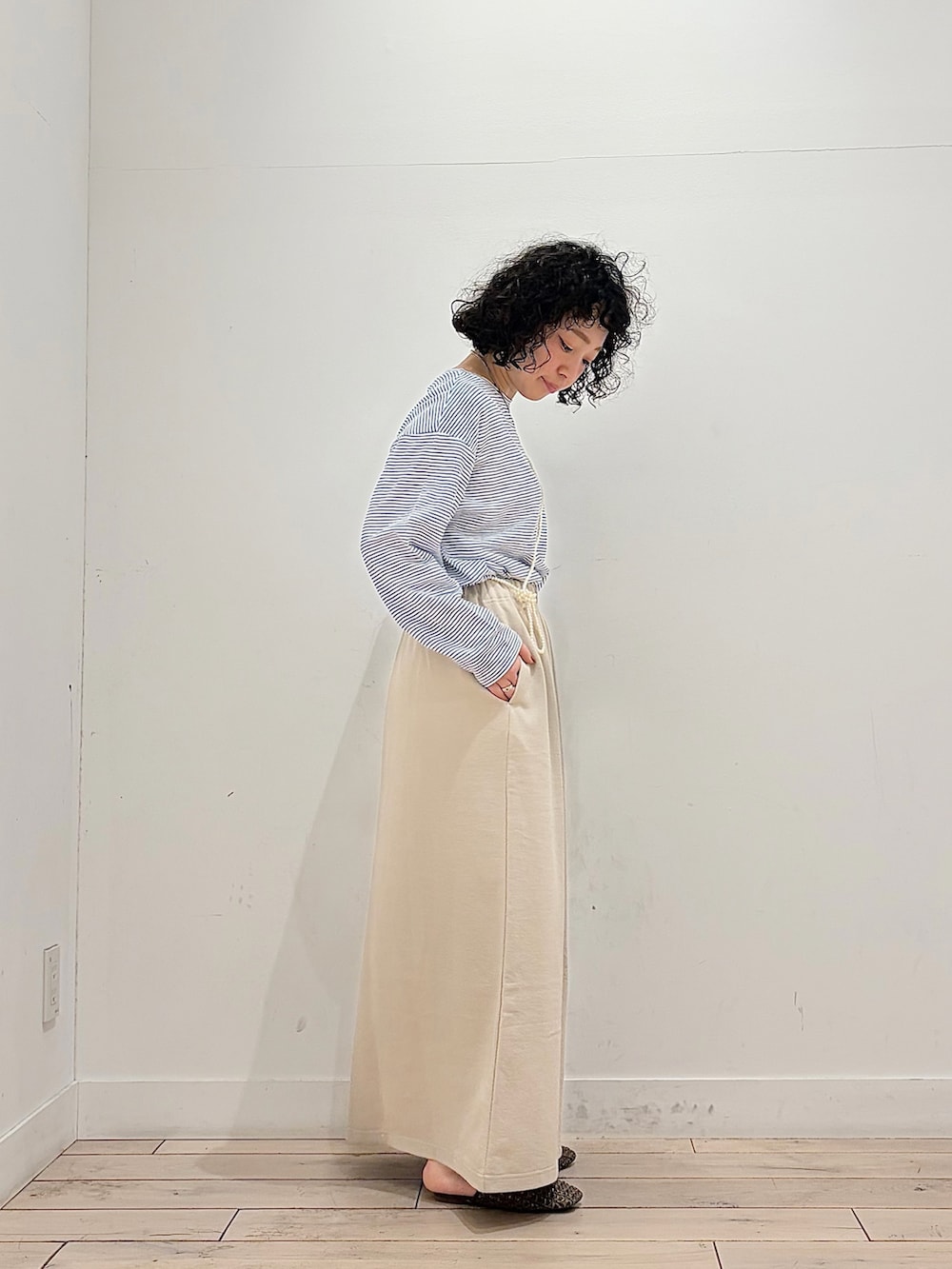 細かなボーダーはキレイめ要素も出るので、ボーダーはカジュアル見えしがちだからちょっと苦手。。な、方でもチャレンジしていただきやすい1枚