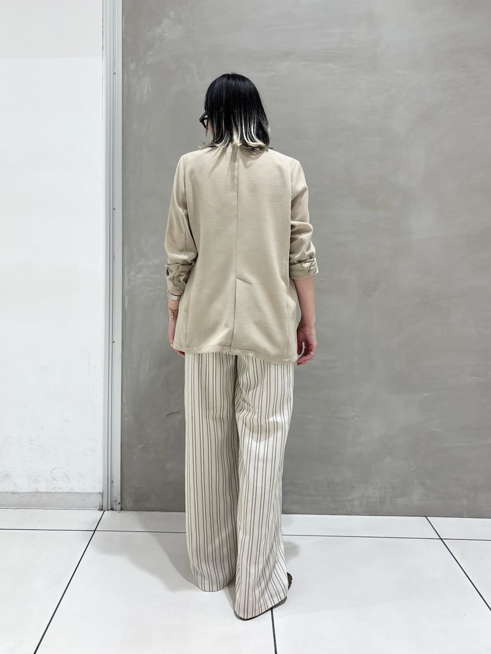 オーバーサイズジャケットが多い中でセットインスリーブによるすっきりとしたシルエットが、洗練されたシャープな印象を演出します。