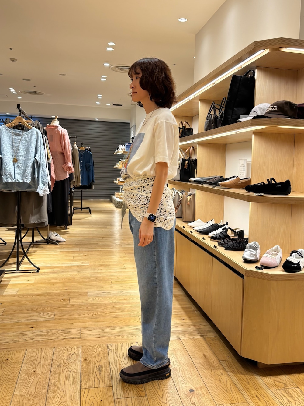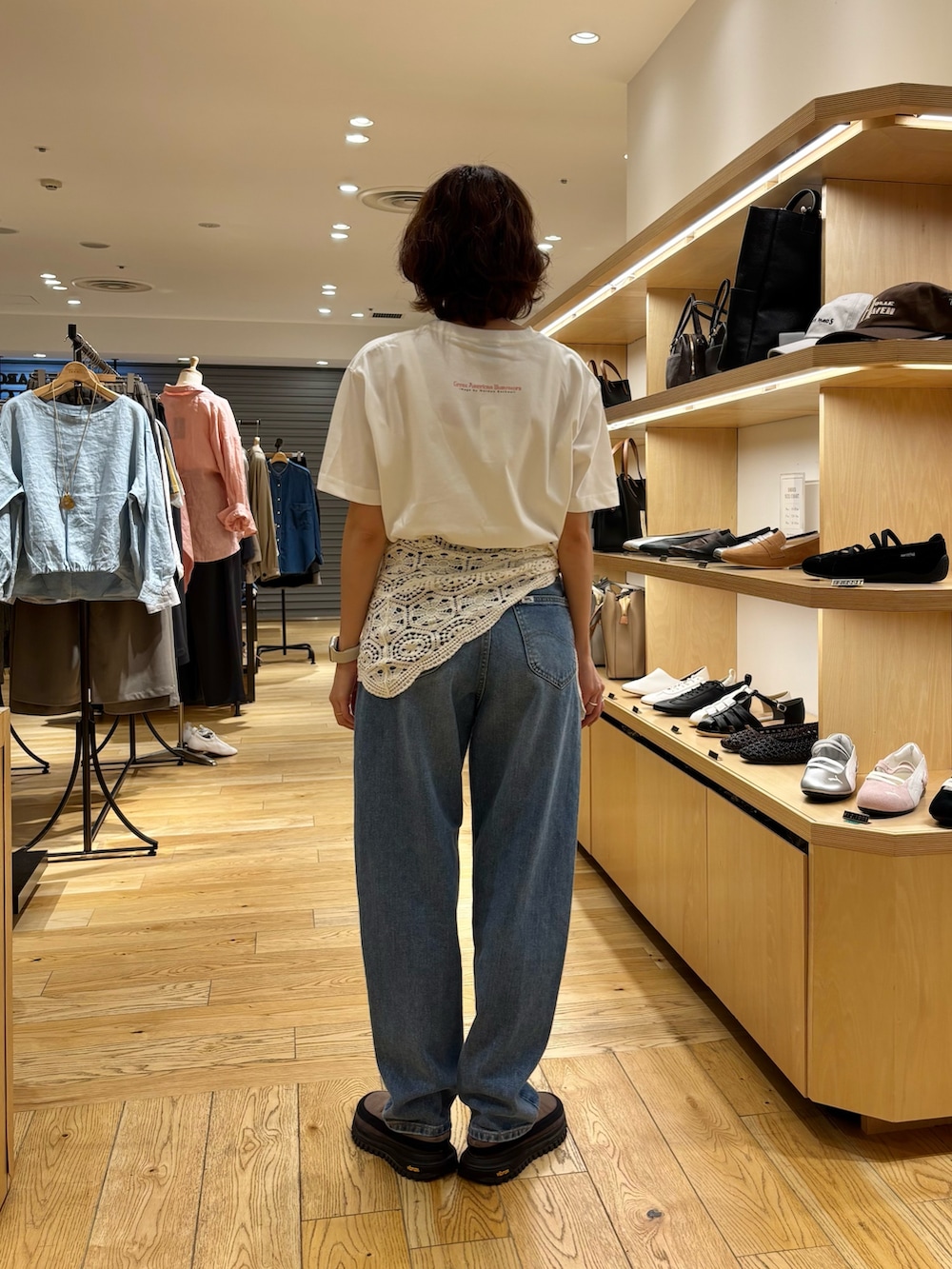 レーススカーフを腰に巻いて今年っぽいスタイリングで。。。*