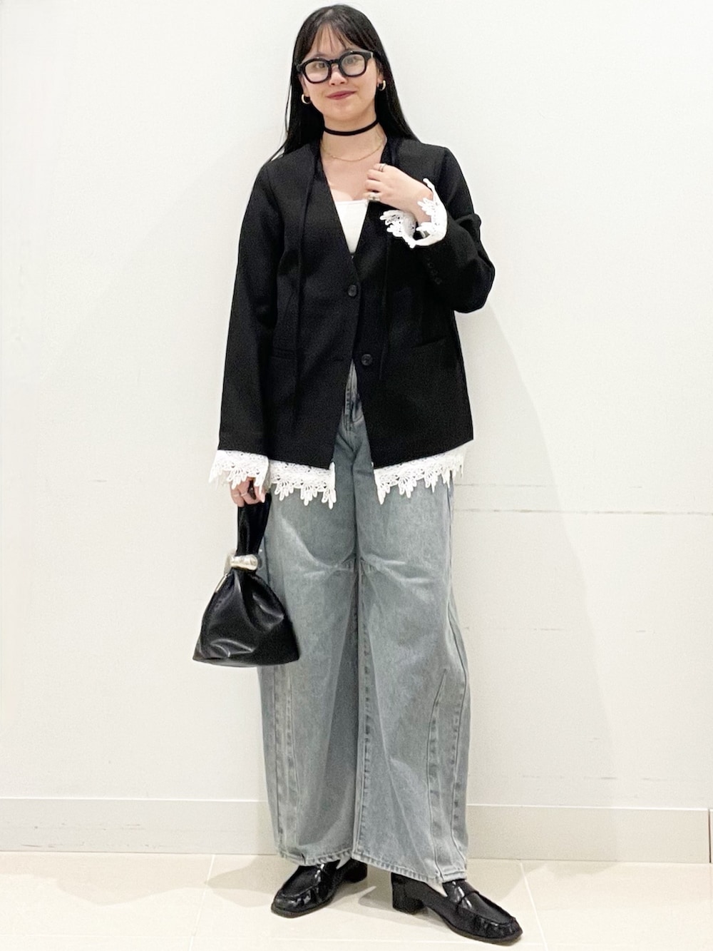 SENSE OF PLACEレースレイヤードノーカラージャケット- 着用カラー: