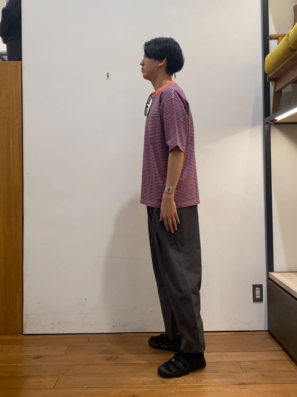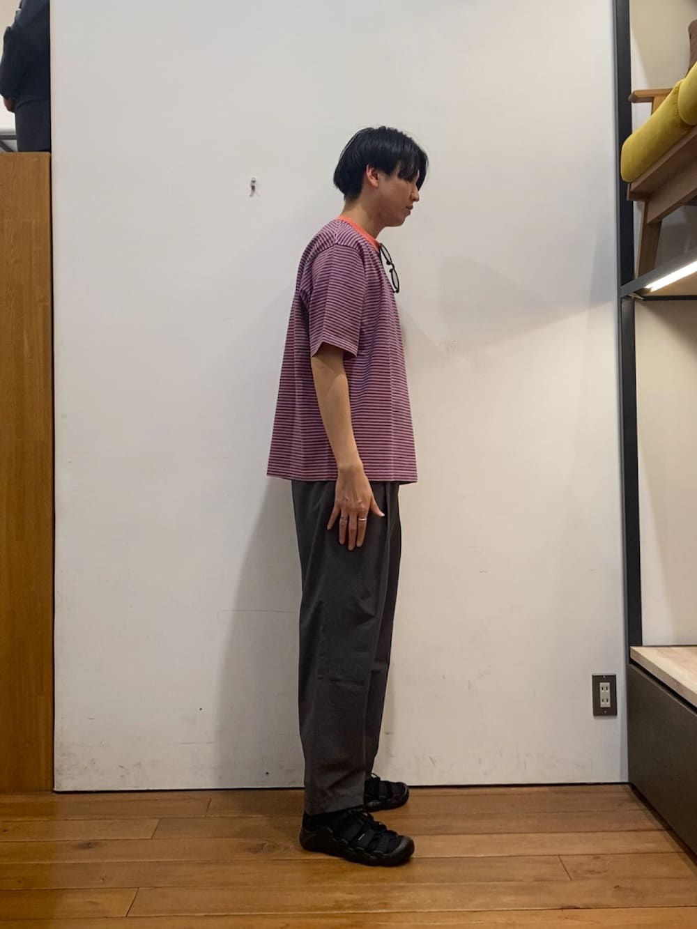 EKALのパンツは夏っぽく丈感をすっきり着たくて、Mサイズを合わせてみました!