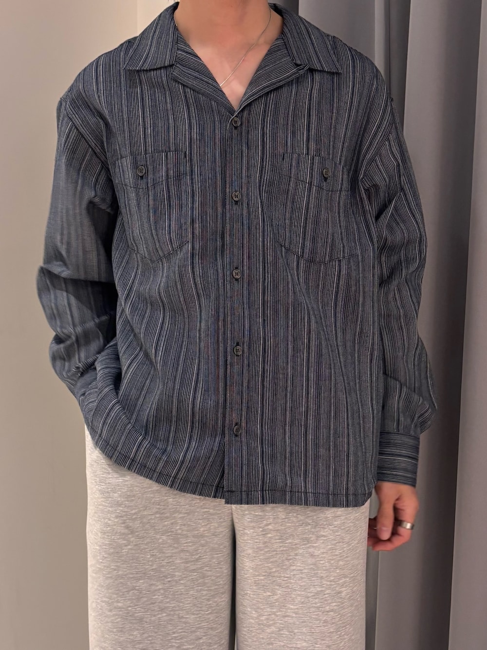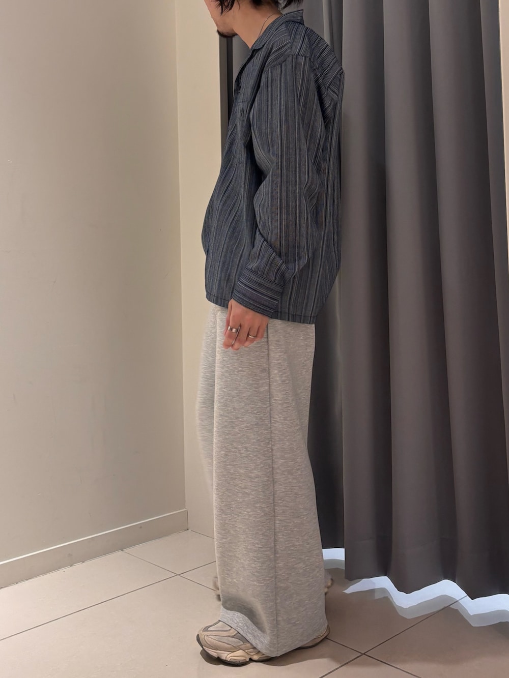 ストライプシャツとスウェットパンツの組み合わせ〜!とてもすき!