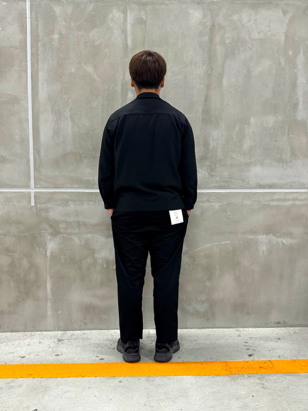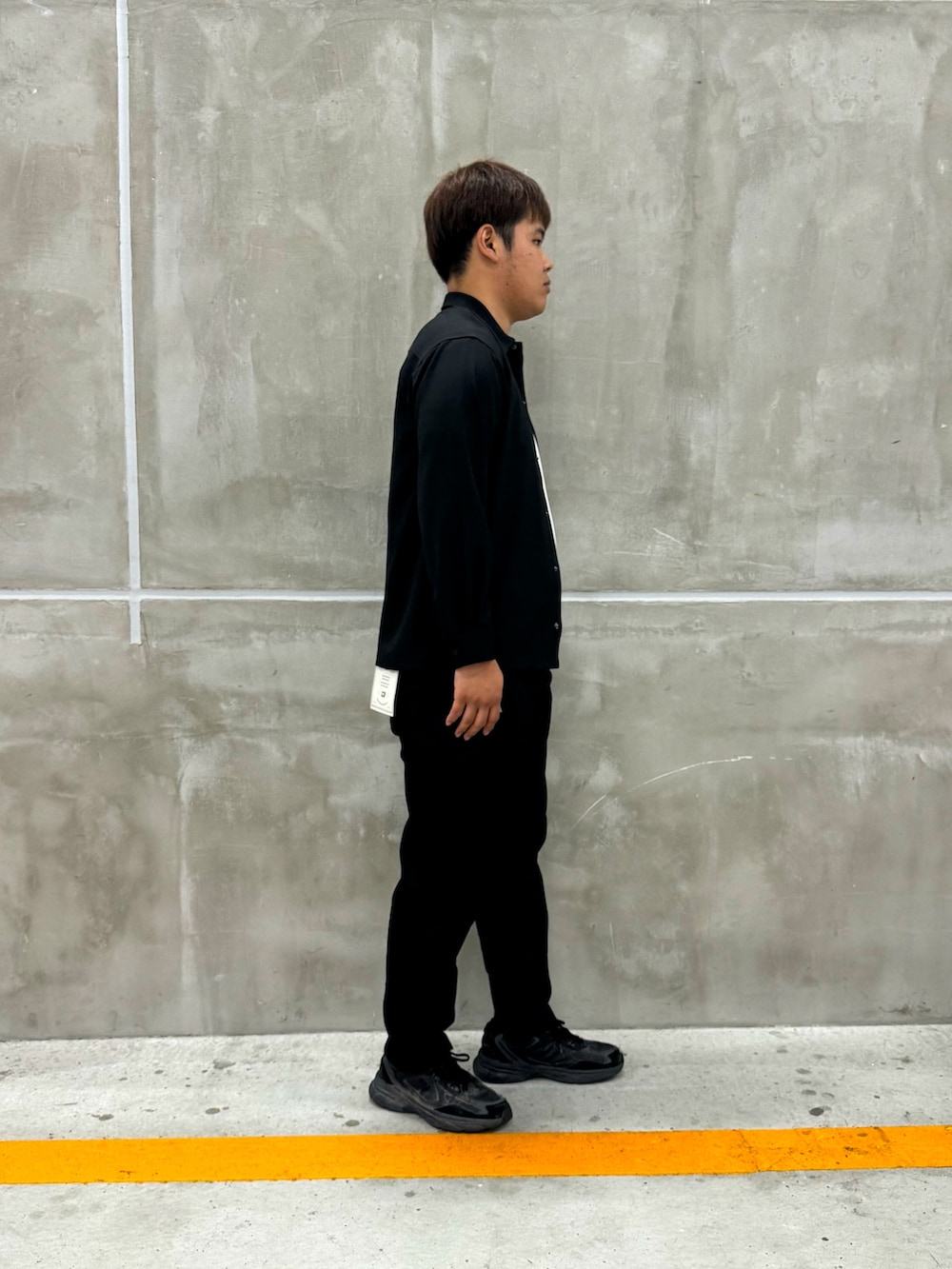 フロントにはシンプルなスナップボタンを採用しており、留めればきちんとしたシャツとして、開ければ軽い羽織りとしても使えます。サイドにはスリットが入っているので、ボトムスとの重ね着も自然にまとまり、動くたびにバランスの良いシルエットを演出します。