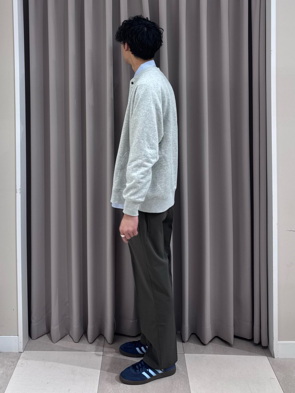 ボトムはパリッとした肌触りのスラックス。通気性、速乾性、シワになりにくいと春〜夏〜秋と気温高い日でも快適に過ごせるアイテム。