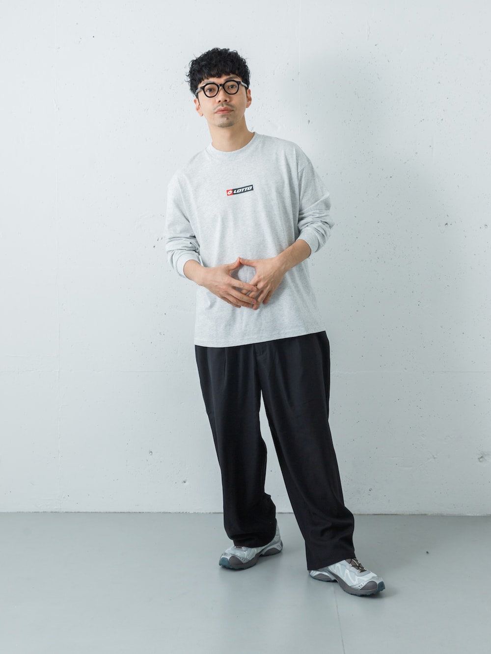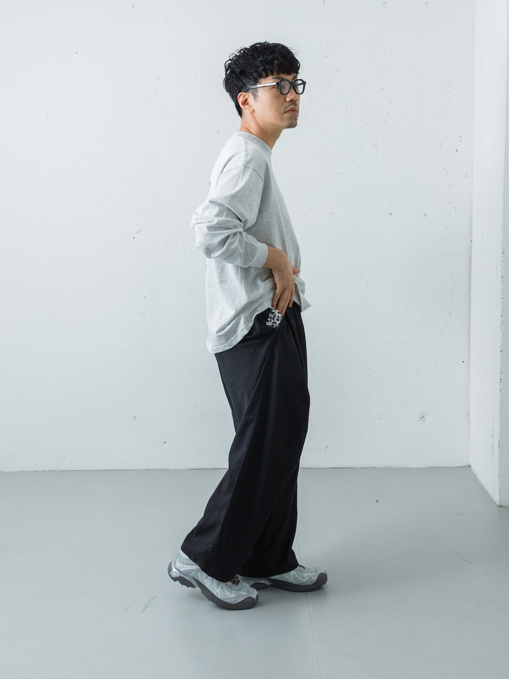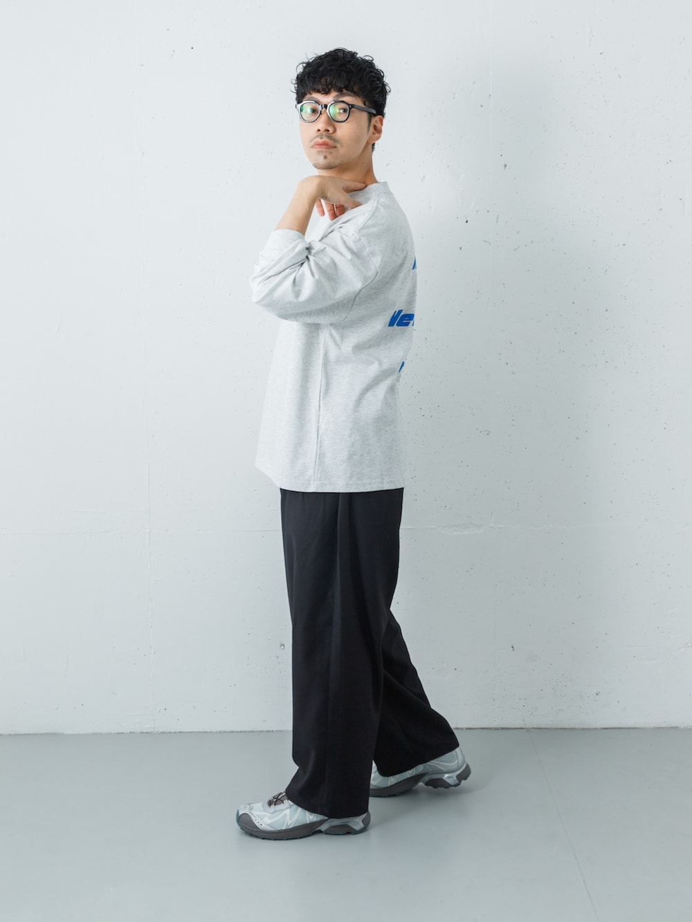 カラーはグレーとブラックのシンプルな組み合わせでTシャツのプリントが映える感じにしました。