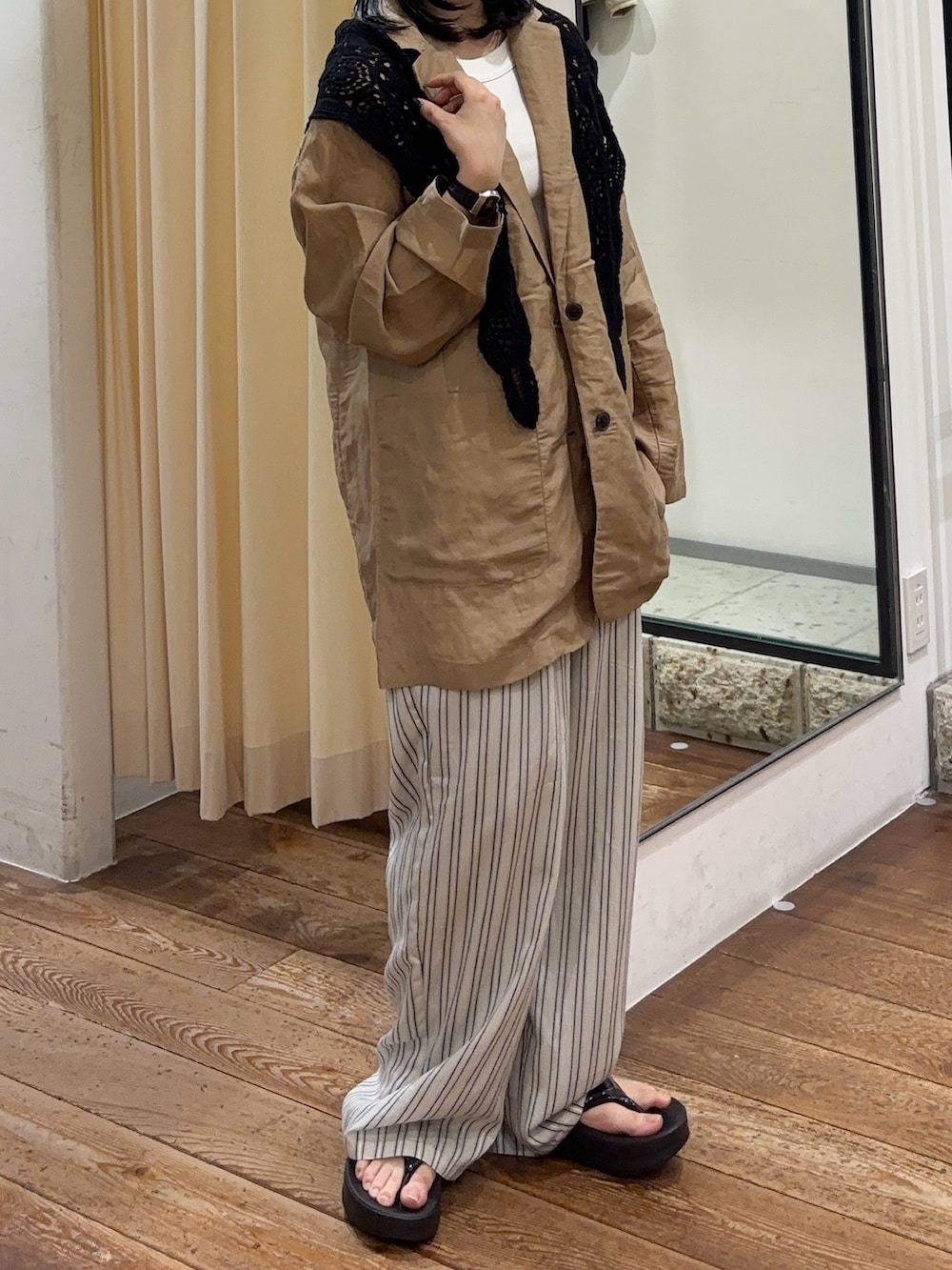通気性・吸湿性に優れ、厚い時期でもさらっと心地よい肌触りが実感できます✨ヒップが隠れる長め丈で体系カバーもでき、シャツ感覚で着れるオーバーサイズシルエットがこなれ感を演出してくれます◎