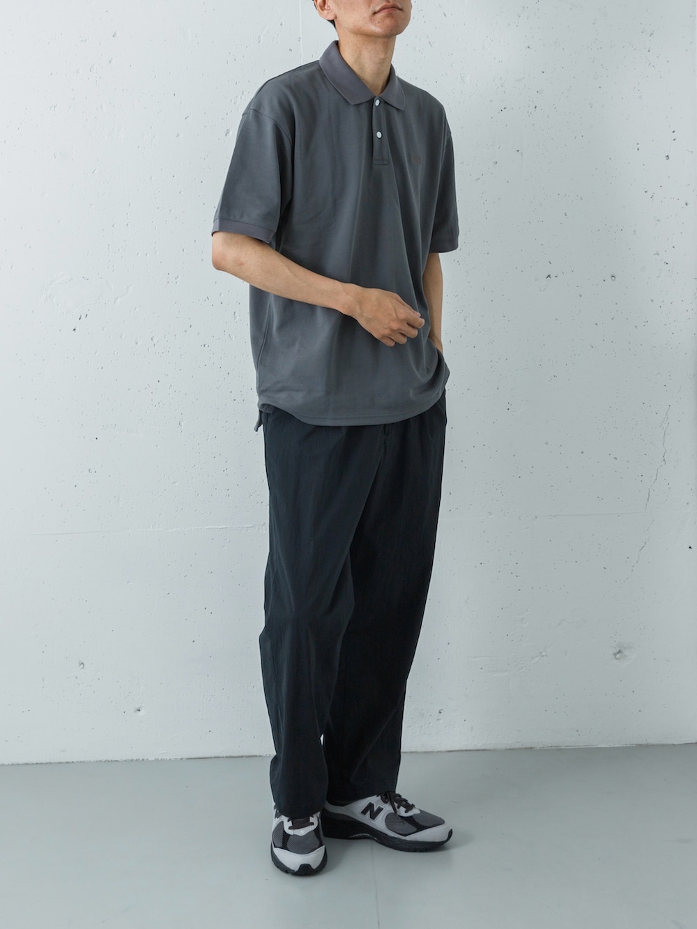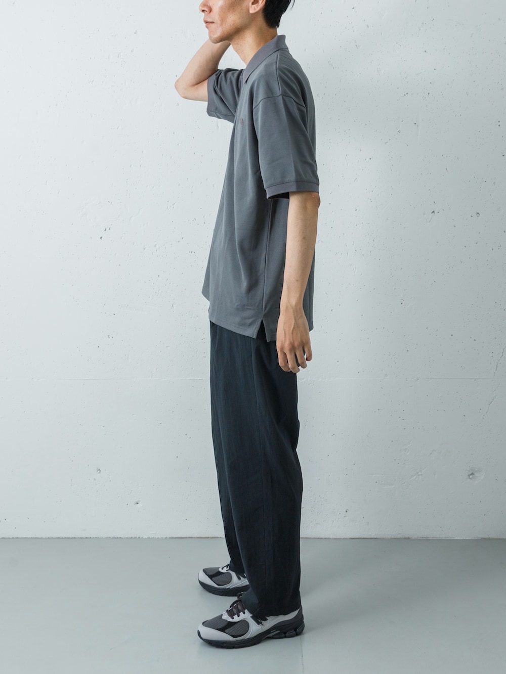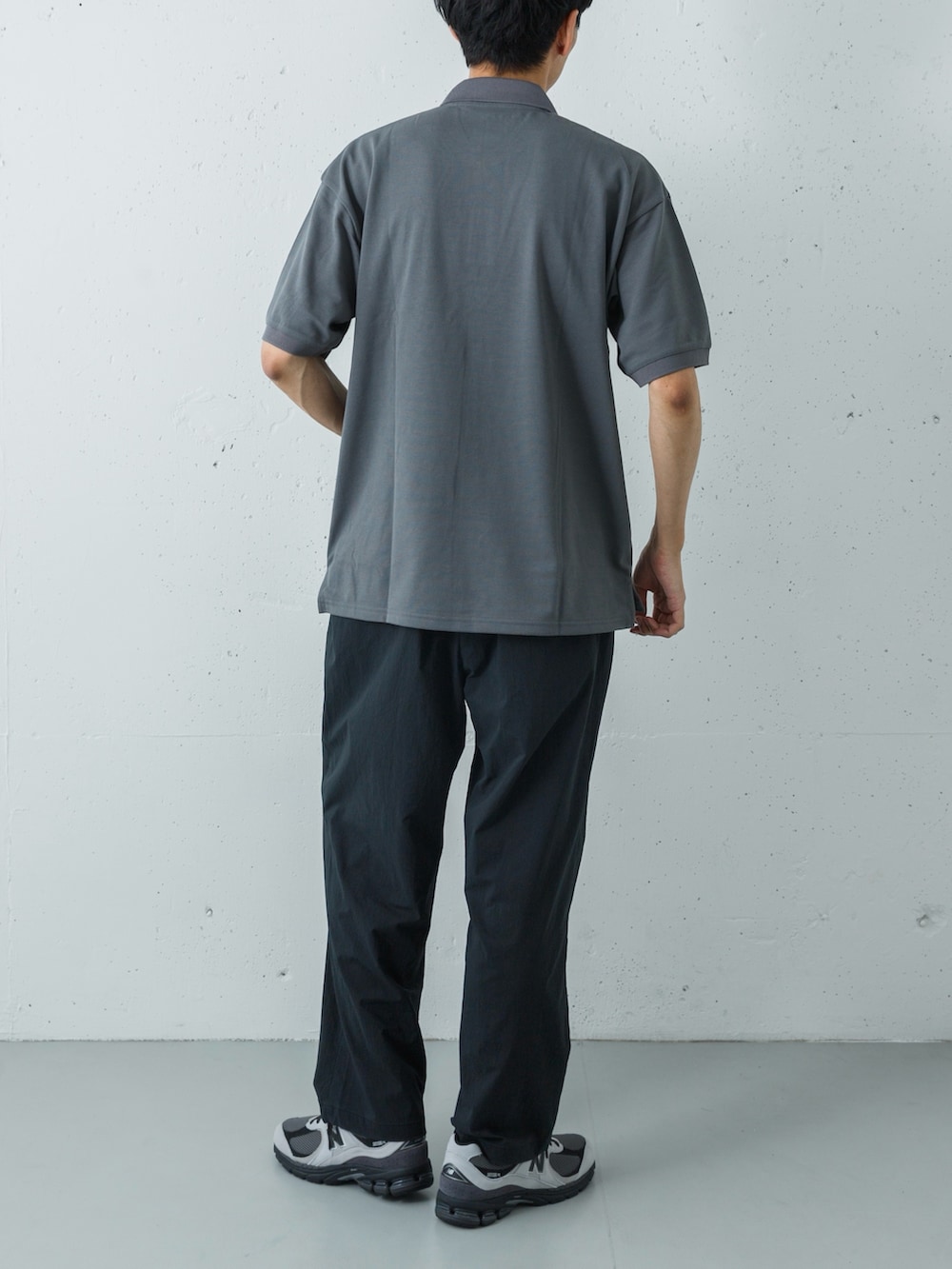吸汗速乾性に優れたポロシャツの襟元が、スポーティーなナイロンパンツに程よい「大人っぽさ」をプラス。上下ともに軽量でドライな素材感で統一することで、アクティブなシーンでも常に快適な着心地をキープします。