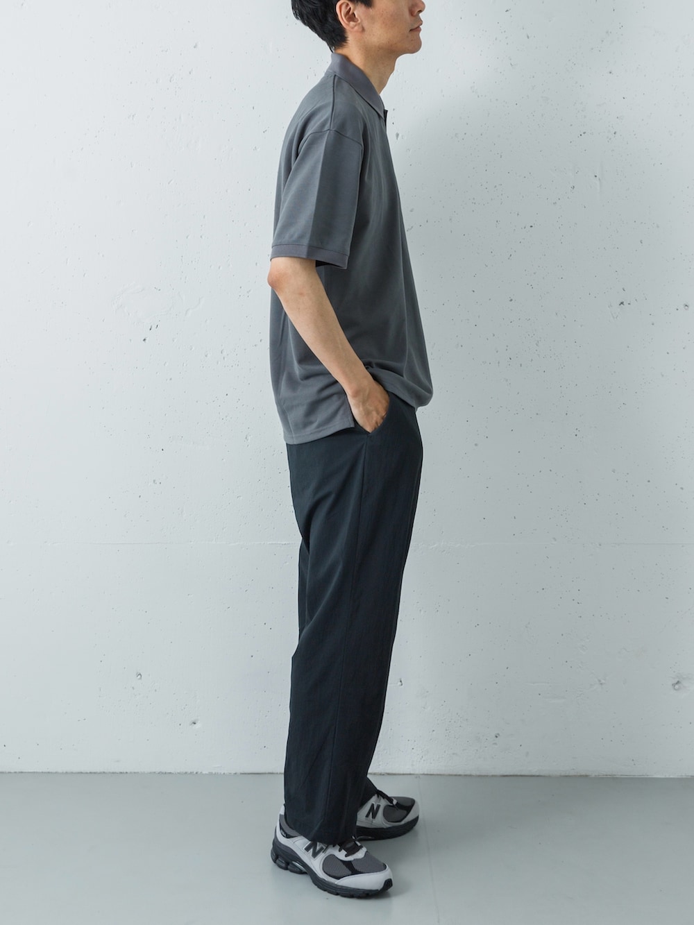 足元には、NEW BALANCE 2002をセレクト。重厚なハイテクスニーカーのボリュームが、ナイロンパンツの軽快なシルエットを足元で力強く受け止め、トレイルから街歩きまでシームレスに繋ぐ、洗練されたアーバンスタイルを完成させます。