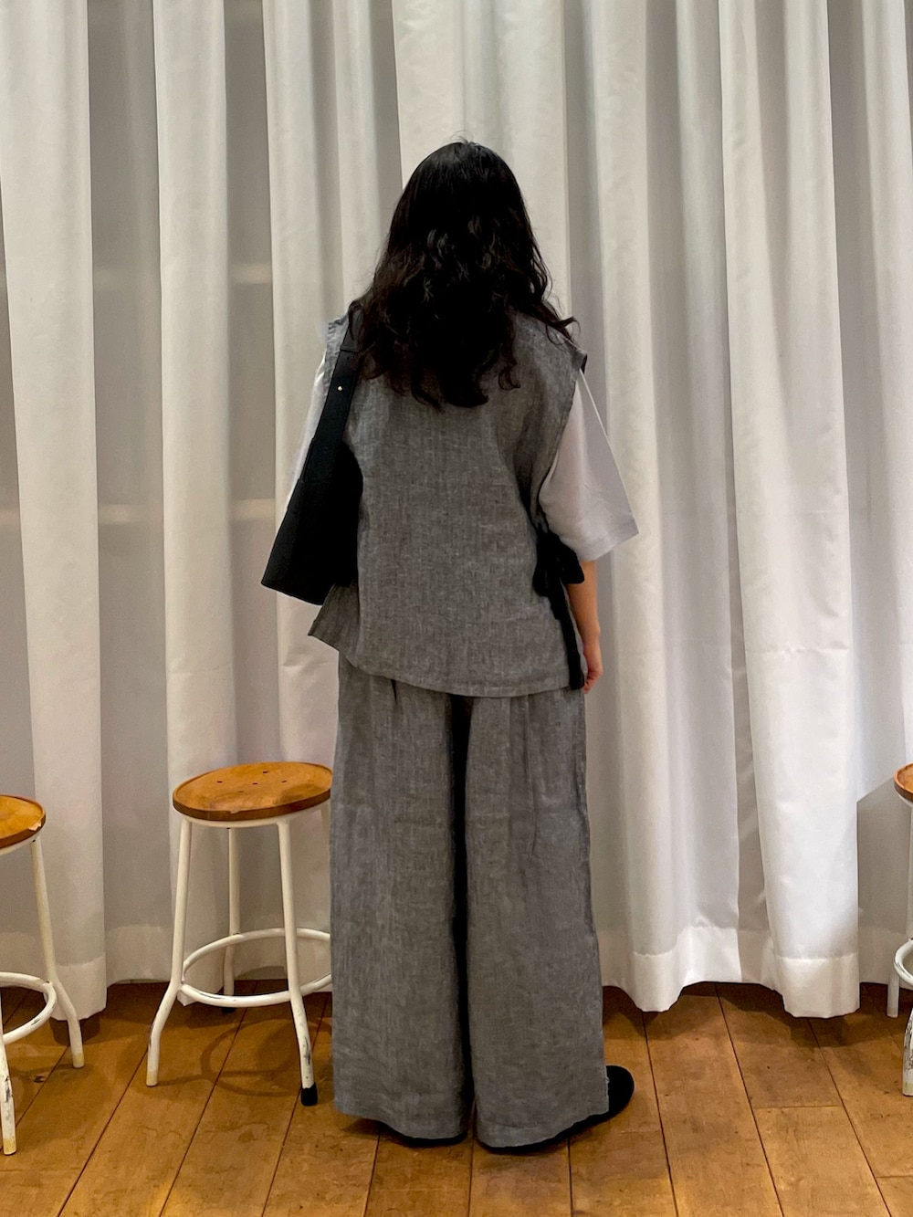 DOORSヘリンボーンリネンワイドギャザーパンツ- 着用カラー: