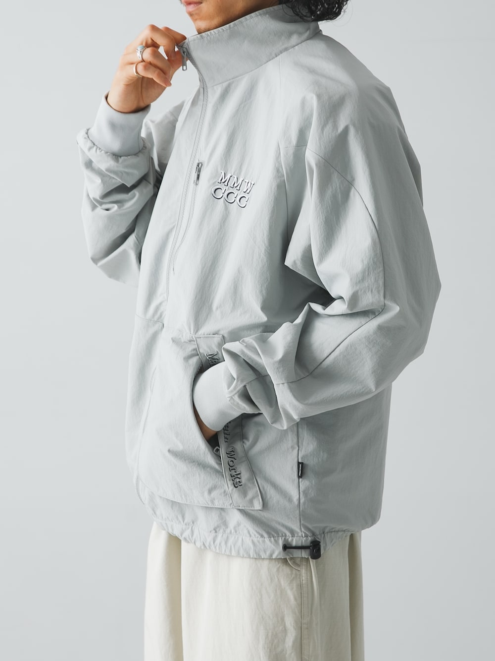 軽量で耐久撥水性に優れたPERTEX UNLIMITEDを採用したジップアップジャケットはフロントに3つのポケットを装備。裏面には快適なメッシュ生地、袖口はリブ仕様で、裾はバンジーコードで調整可能。