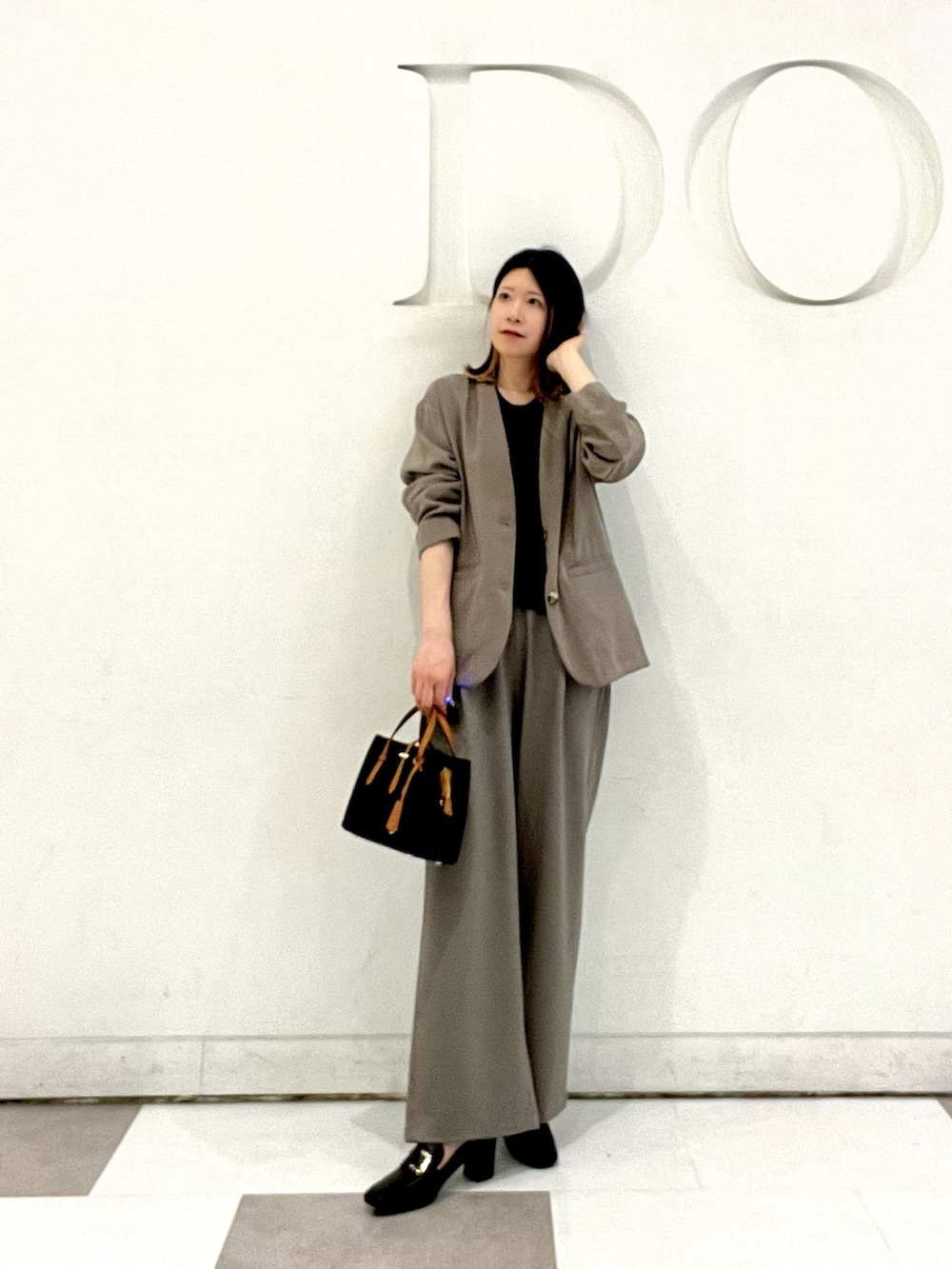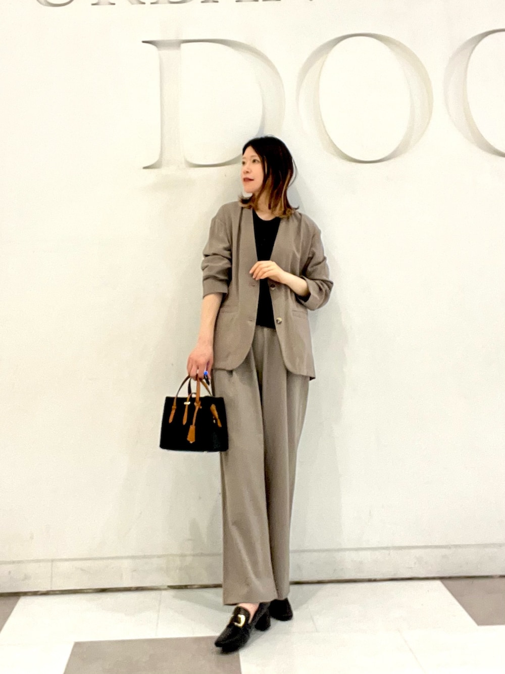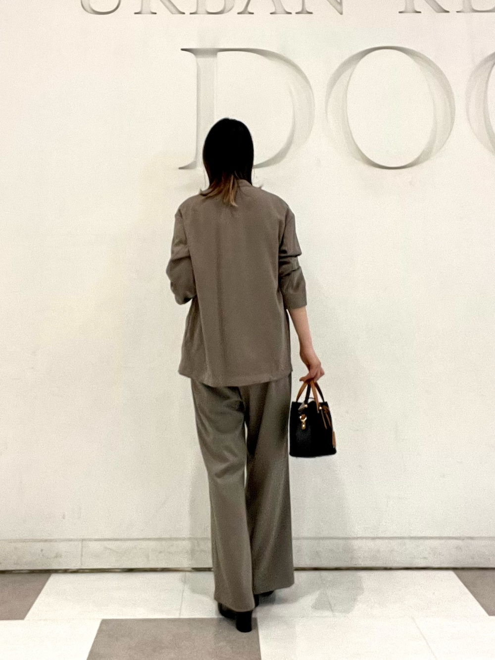 ノーカラージャケットは柔らかな肌触りで軽い着心地◎オンオフで着回しのできる万能ジャケットです!今日はお仕事スタイルで着用してみました!