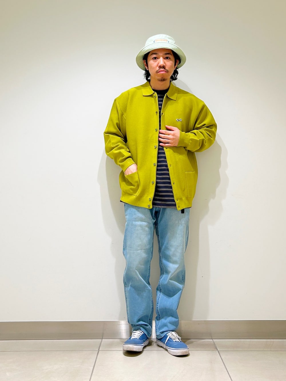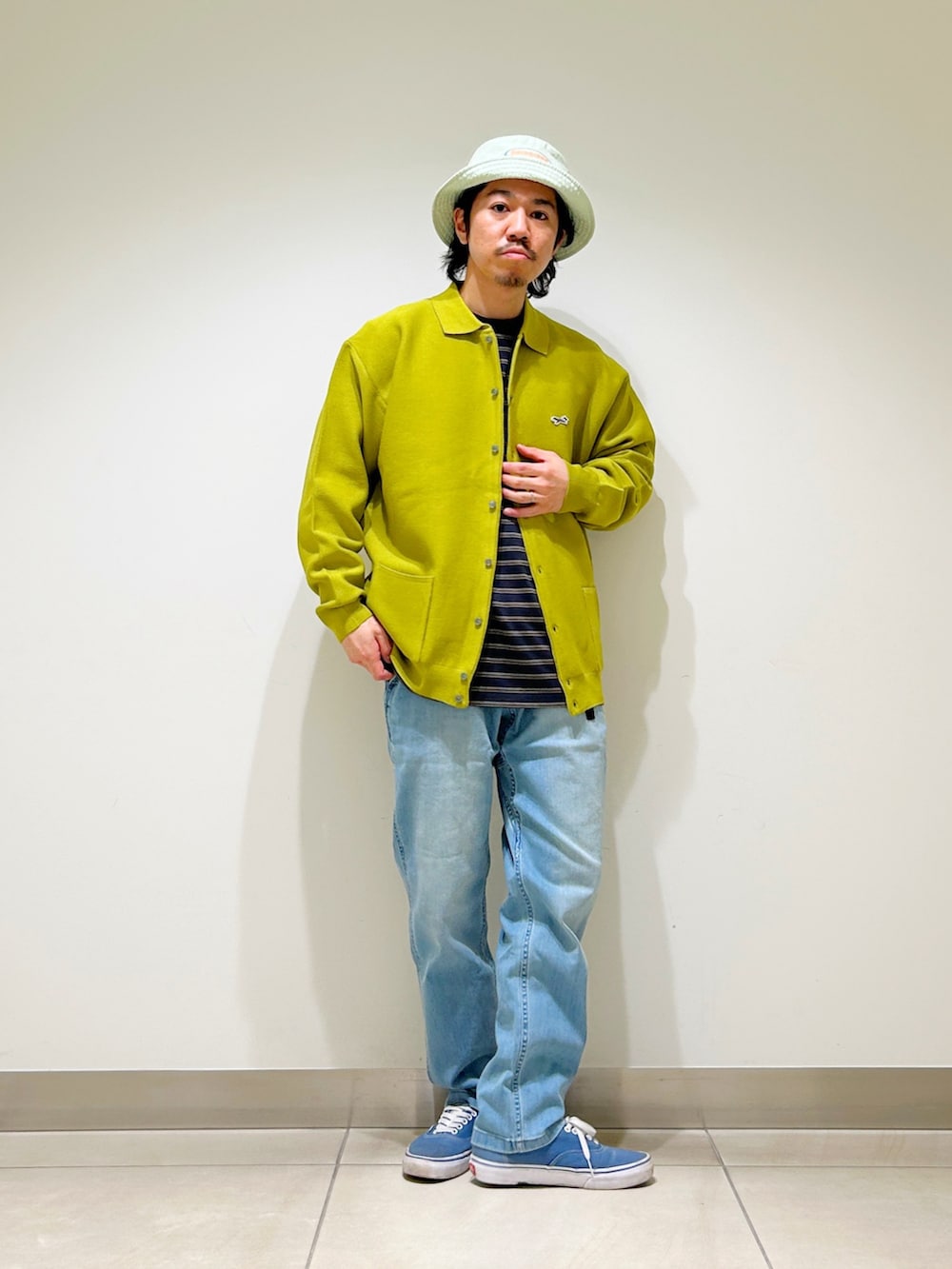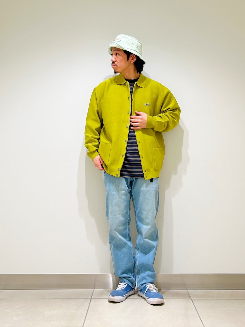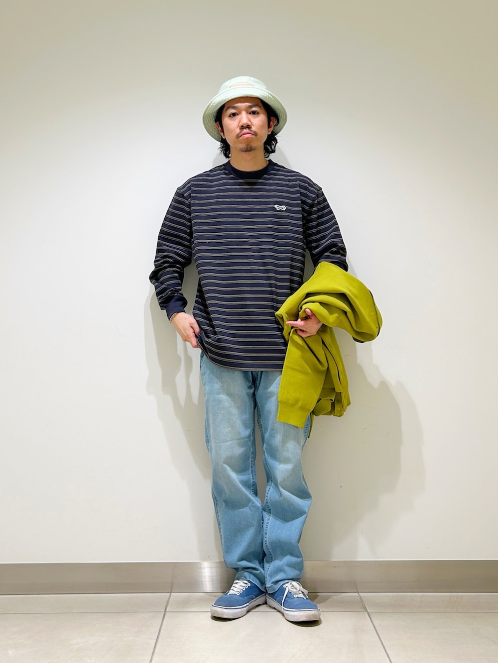 今回はボーダーTシャツとデニム合わせでストレートなカジュアルスタイルに。