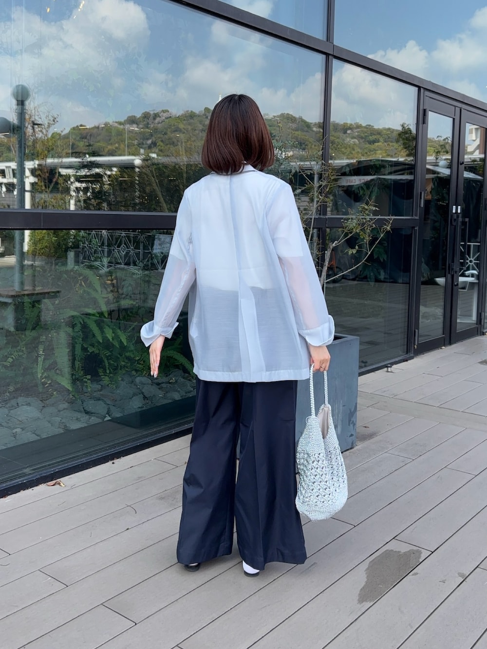 シンプルなデザインながらも、トレンドを取り入れることができるシアージャケットです!🩵ロゴTに合わせてカジュアルなコーデにしました!