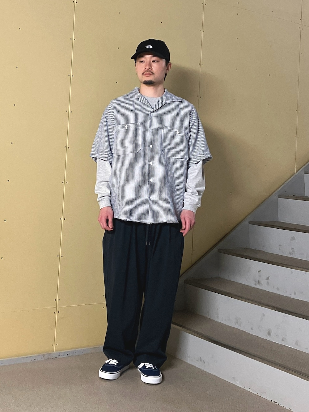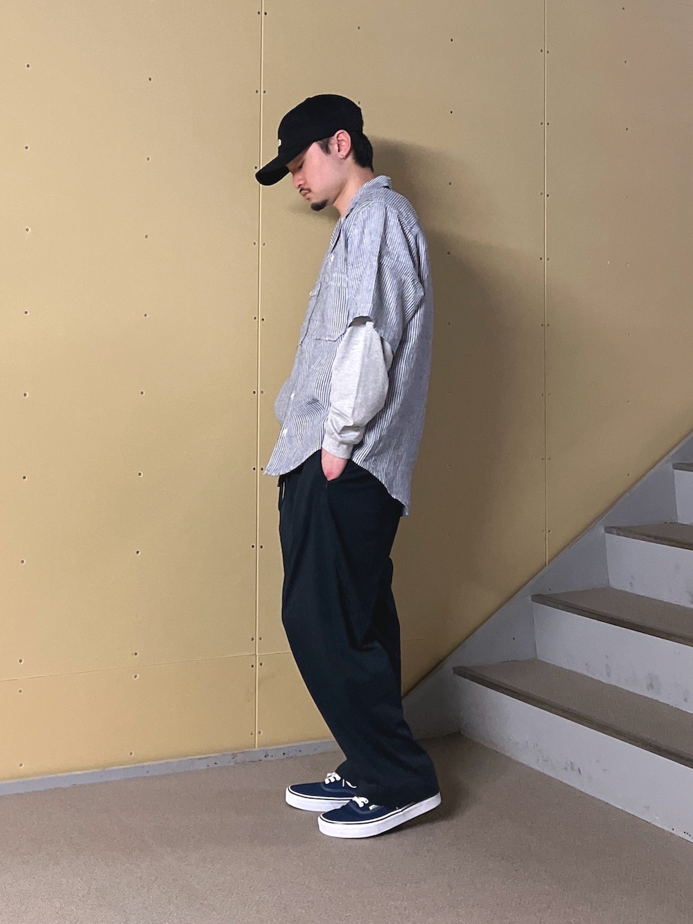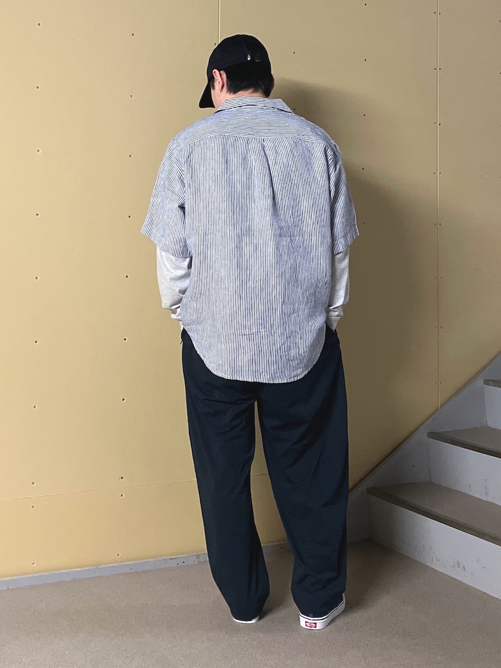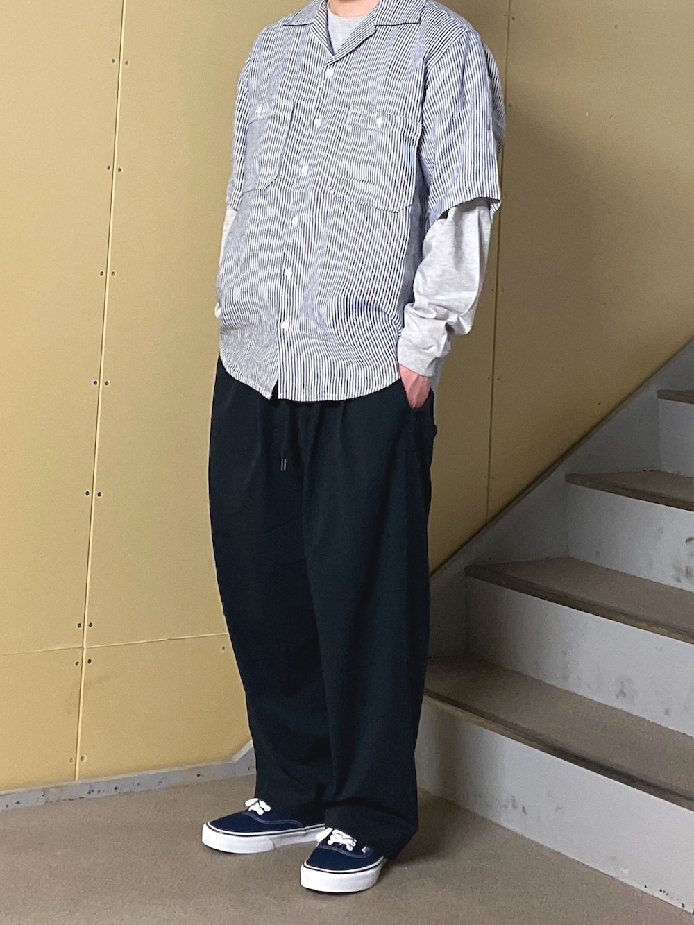 トップスはFORK&SPOONのリネンシャツです。ダブルポケットが個人的にアツいです!パンツはWide dad。最高ですよ。かなり軽く、夏場も重宝しそうだなと感じました。