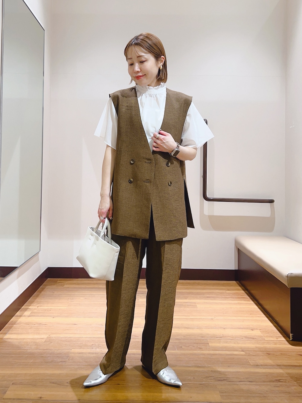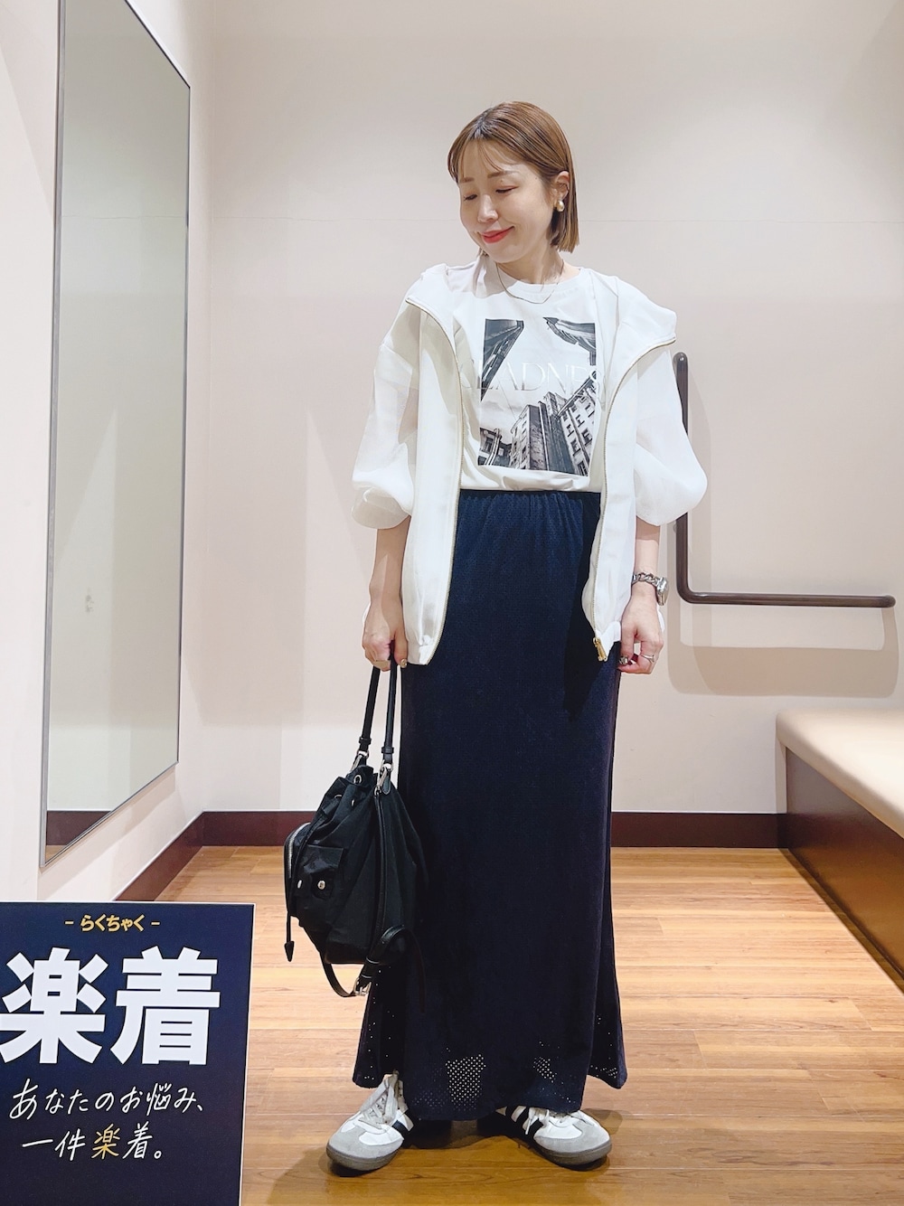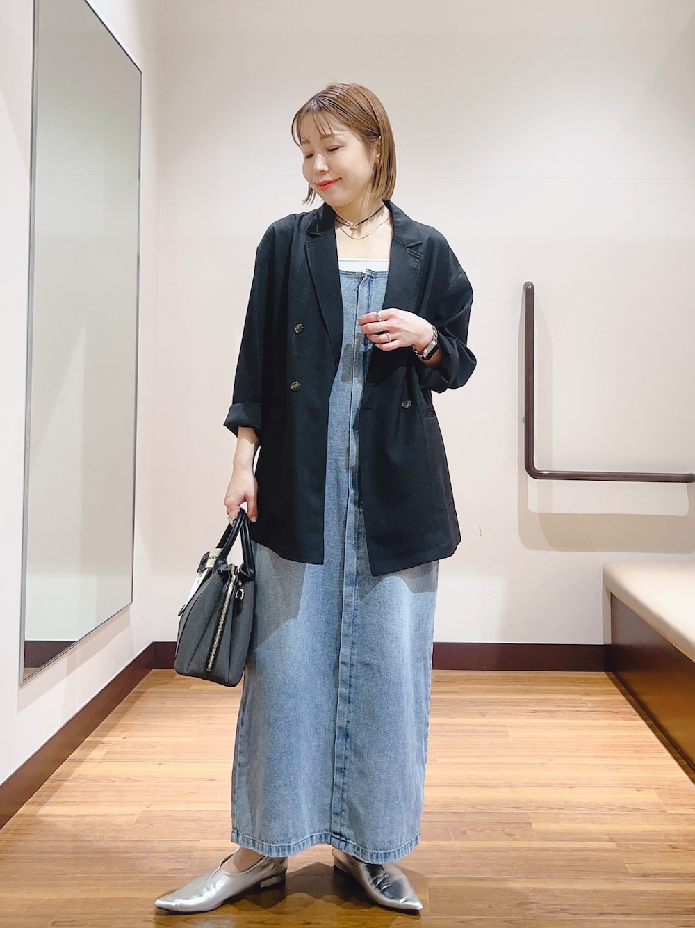 ワンピースは肩紐が調節可能なので低身長さんにもオススメです😊