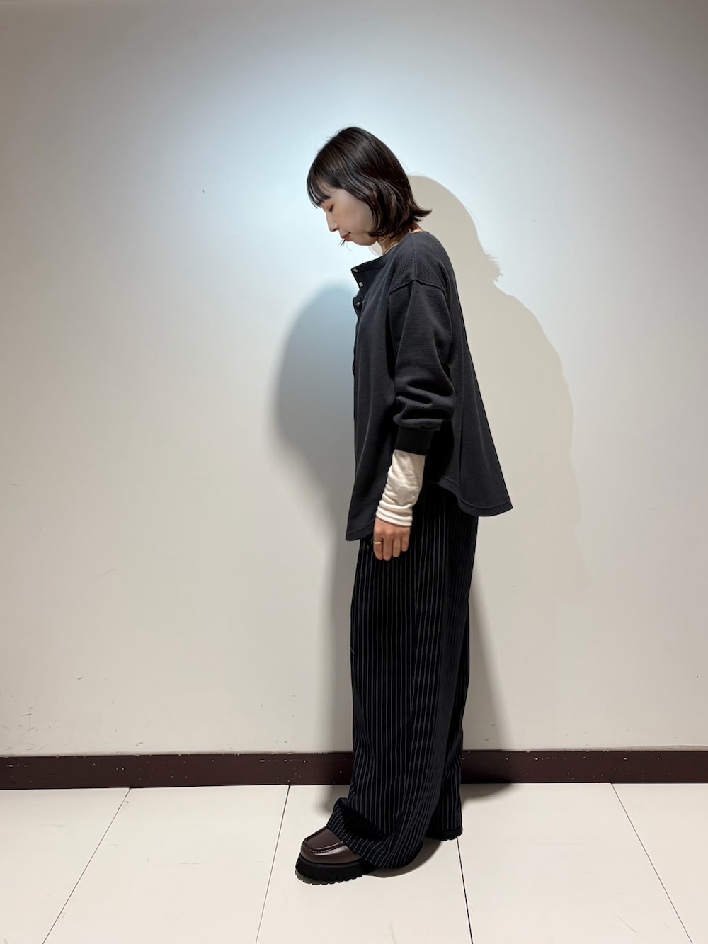 ボタンを開けて着ると一気に抜け感が出ます✨️
