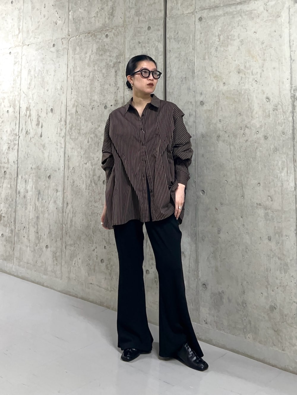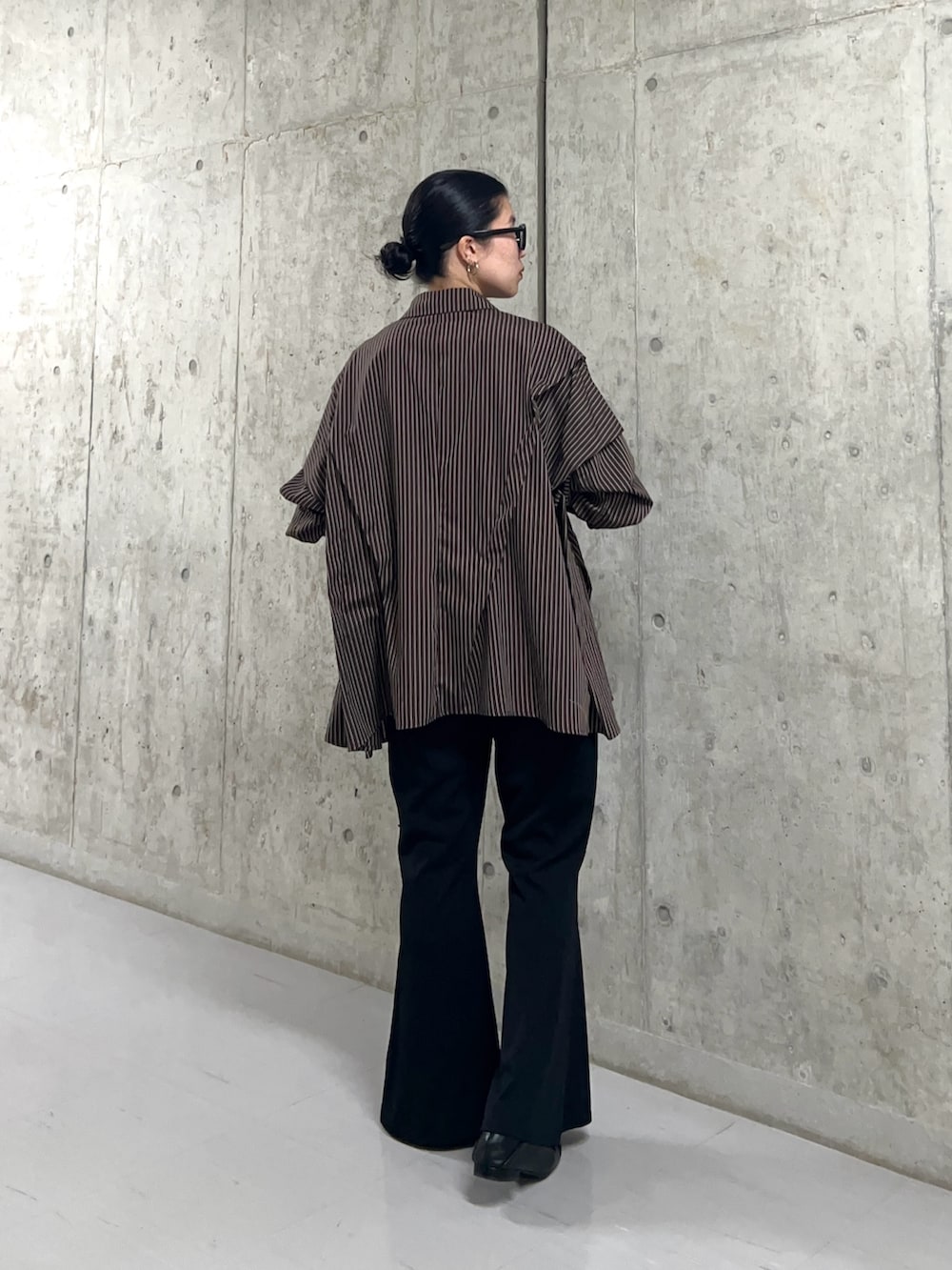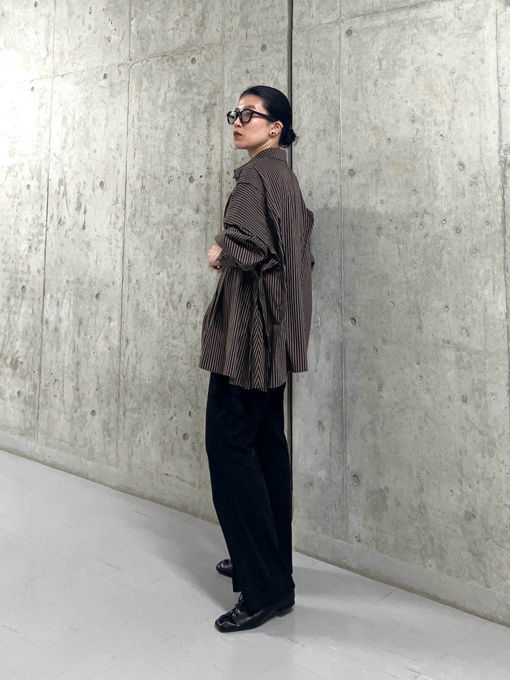 ランダムにタックが施されたストライプシャツは着るだけでサマになるアイテム!