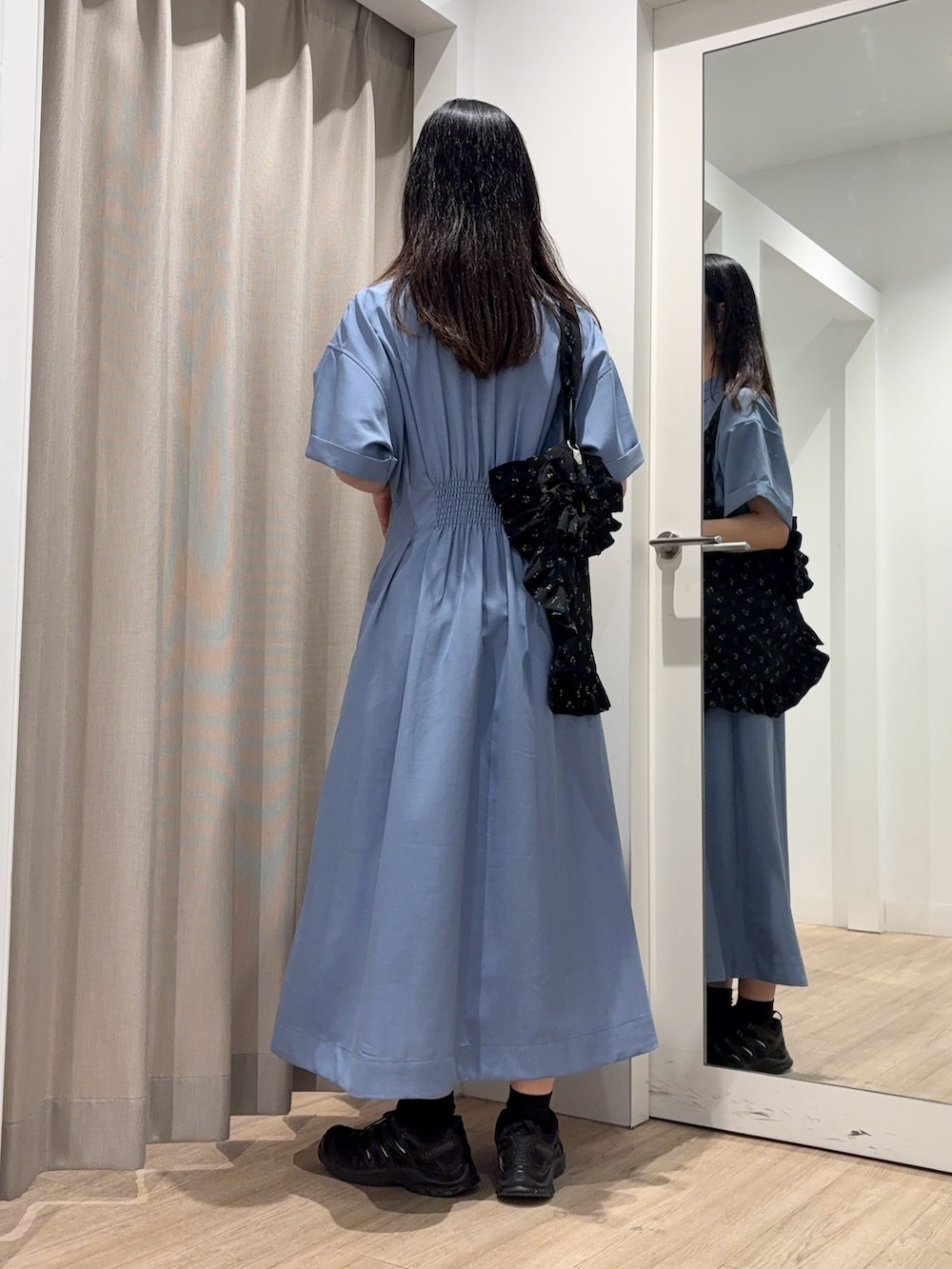 今回はブルーのお色が爽やかなワンピースをメインに、ラフなお出かけコーデをしてみました♪