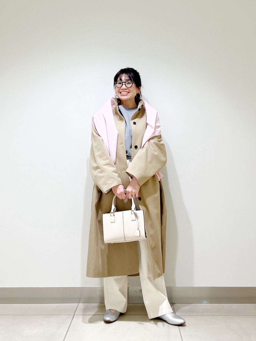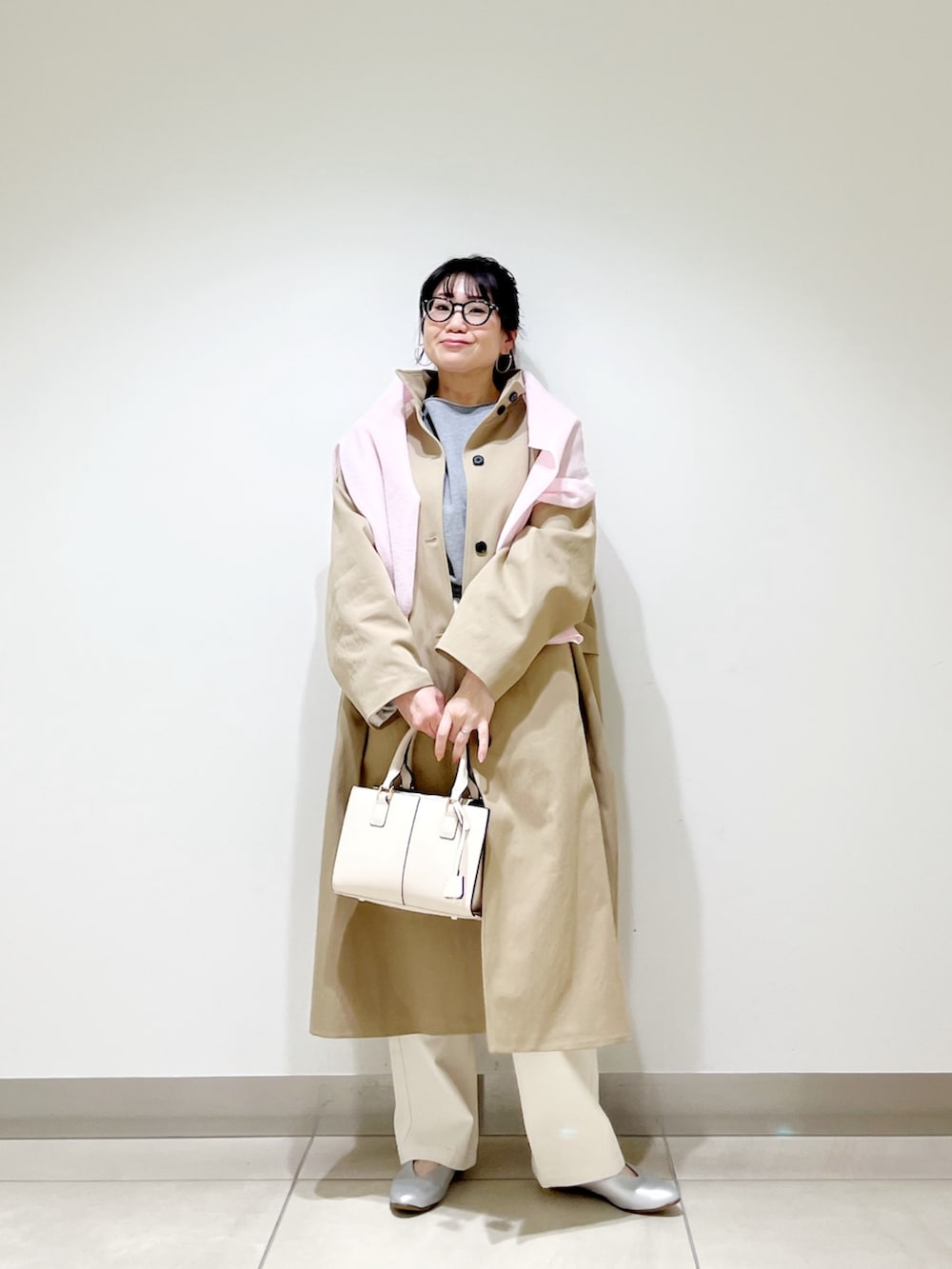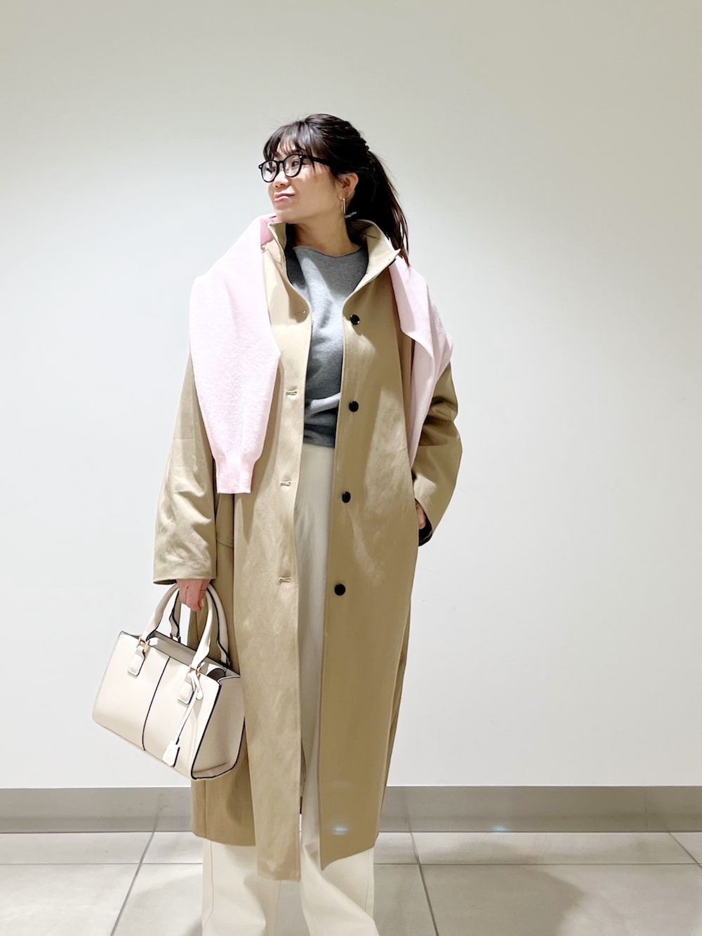 コートの上からスウェットを掛けておしゃれ見えするようにしました☆