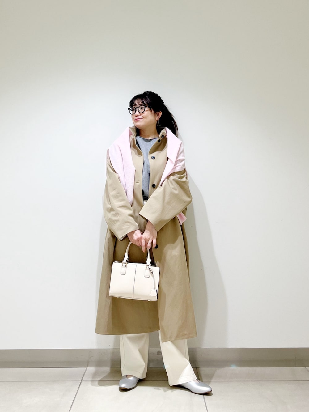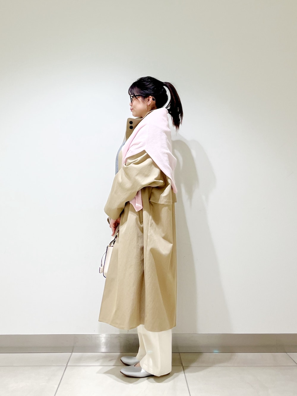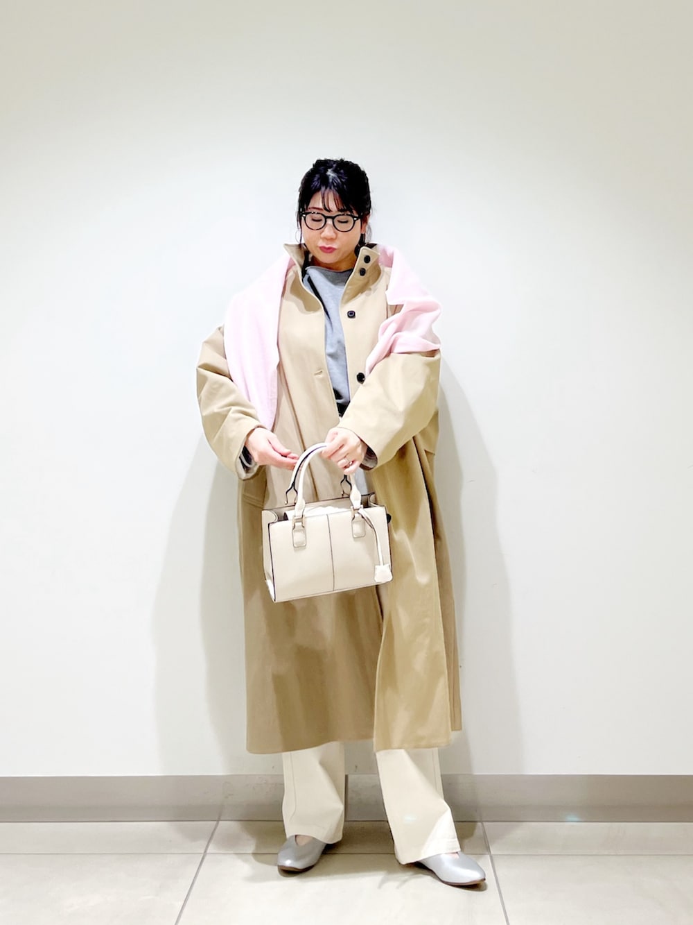 コートの上からスウェットを掛けておしゃれ見えするようにしました☆